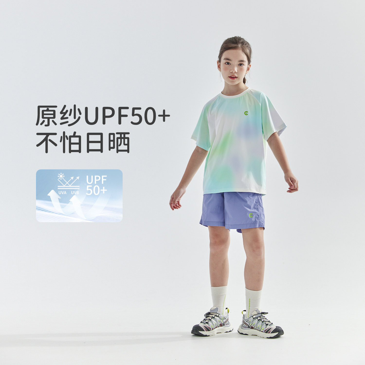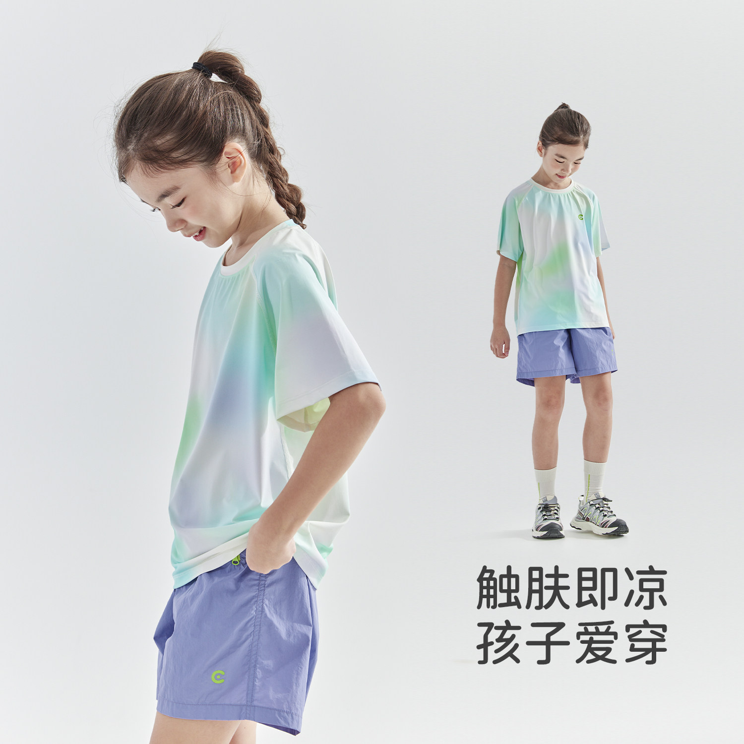 cicochild2026年夏季新款中大女童晕染短袖T恤亲子款渐变凉感上衣