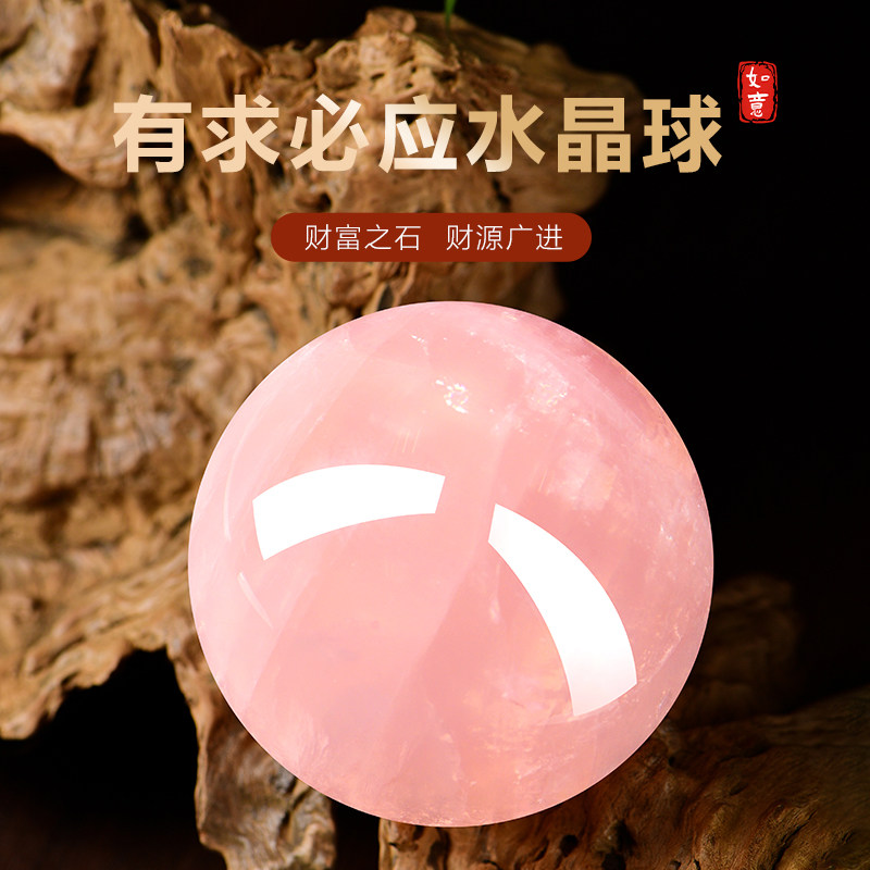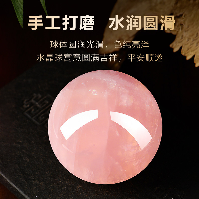 粉水晶球摆件招桃花卧室房间床头柜粉晶装饰品粉色客厅珠宝摆放