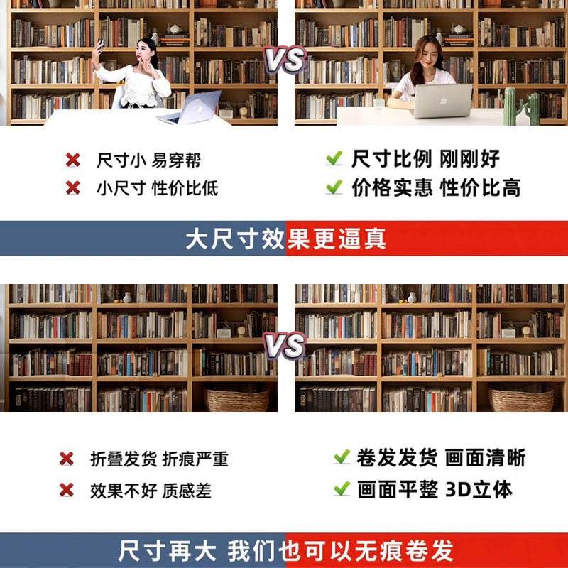 知识讲解坐播口播书架书房直播背景布3d立体背景墙网红主播装饰室内书柜氛围感网红壁纸壁画办公室场景布置