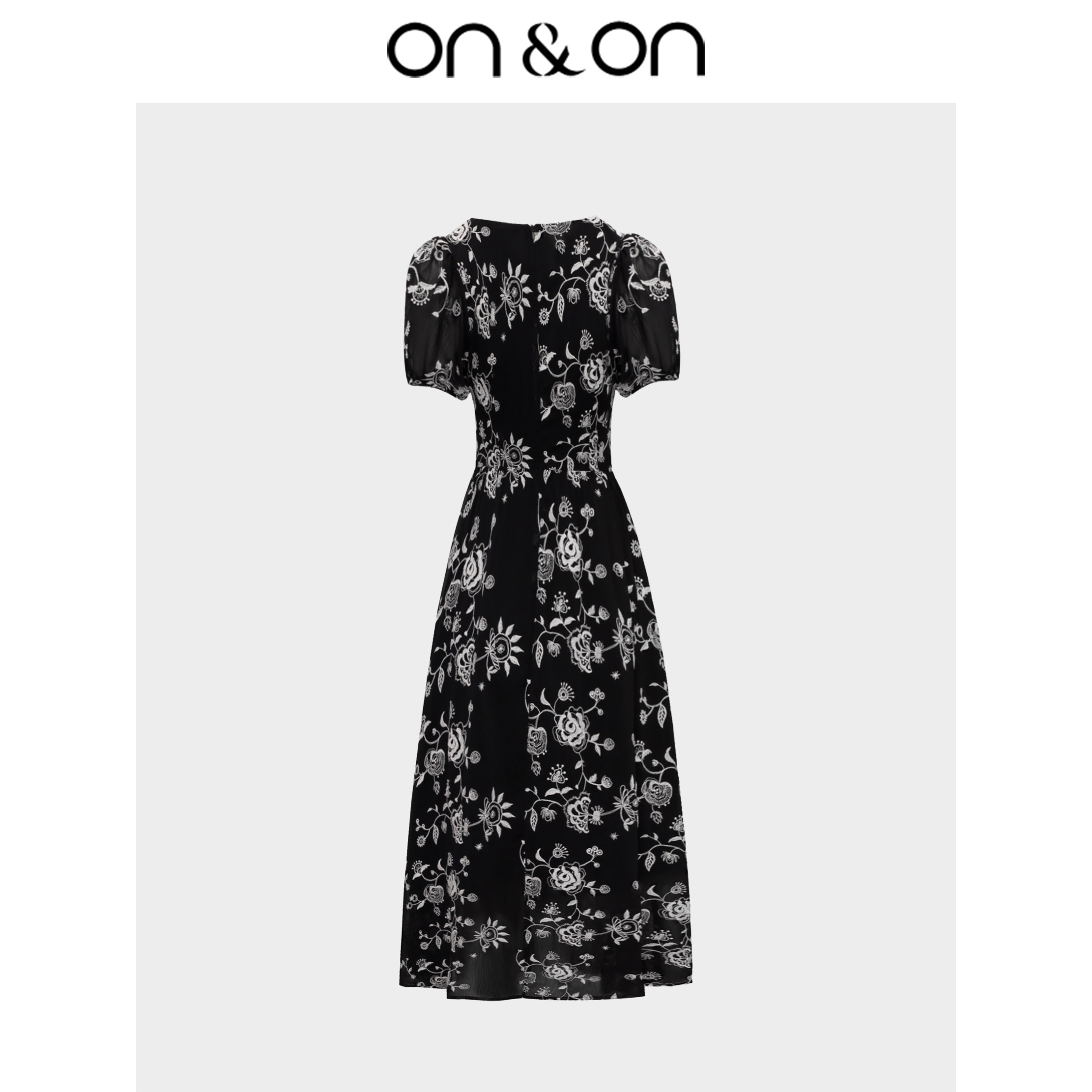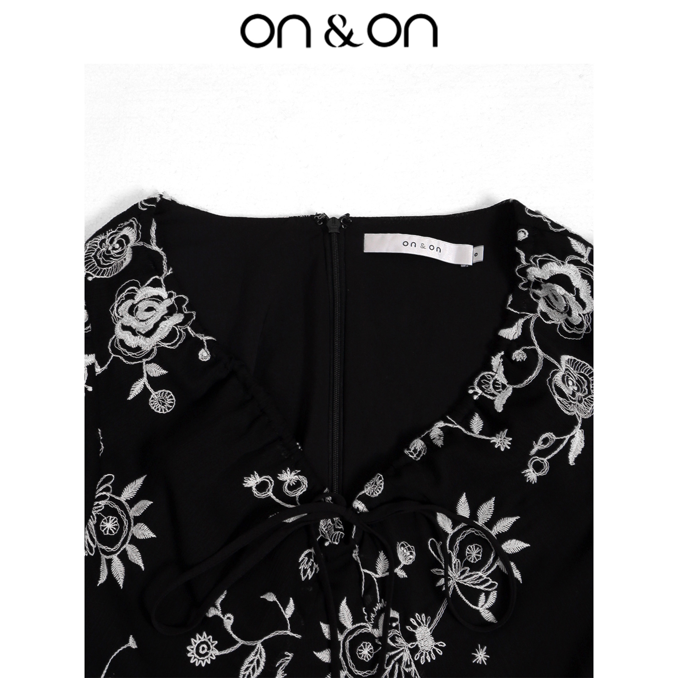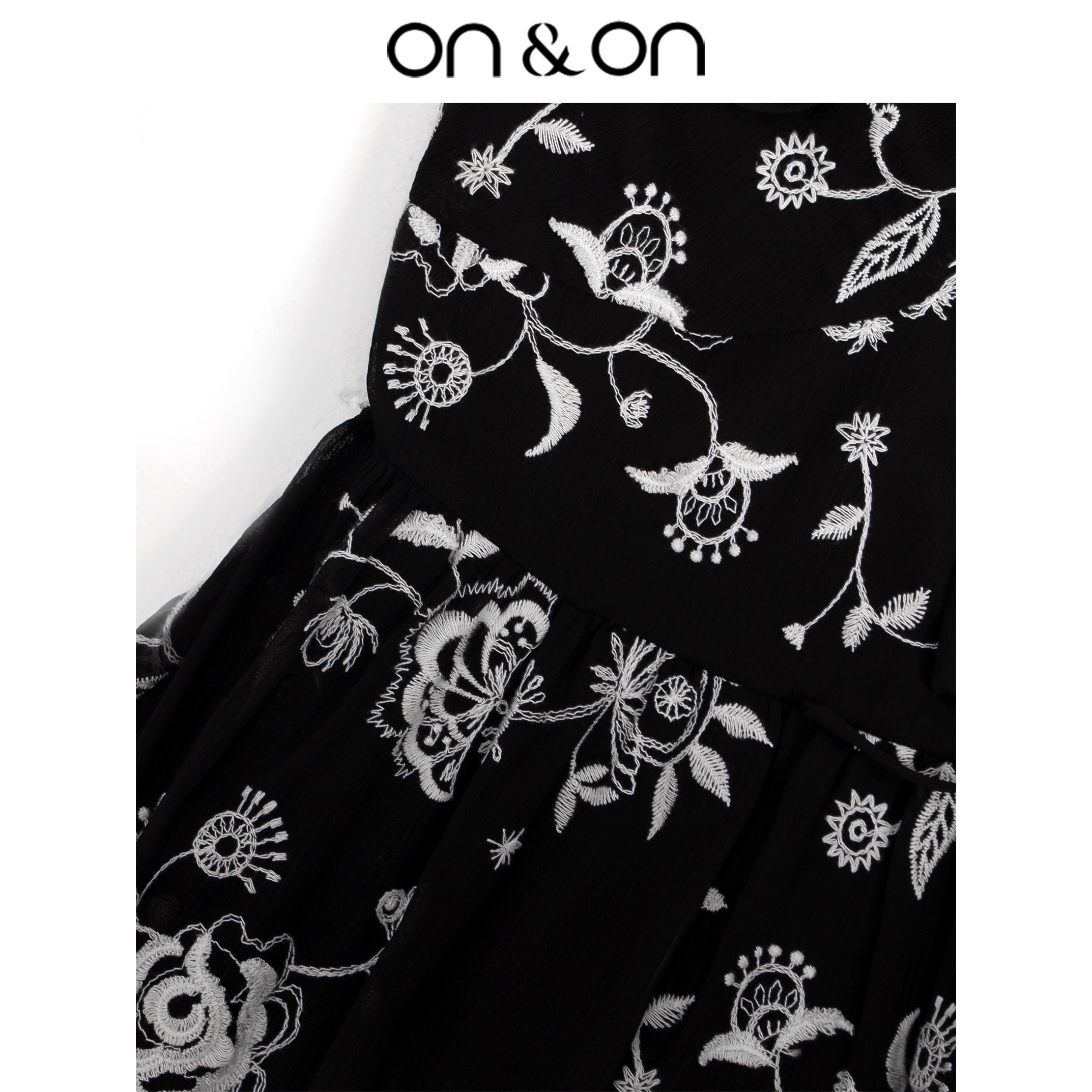 ON&ON/安乃安2026春夏新款韩系V领抽绳系带气质显瘦绣花连衣裙女