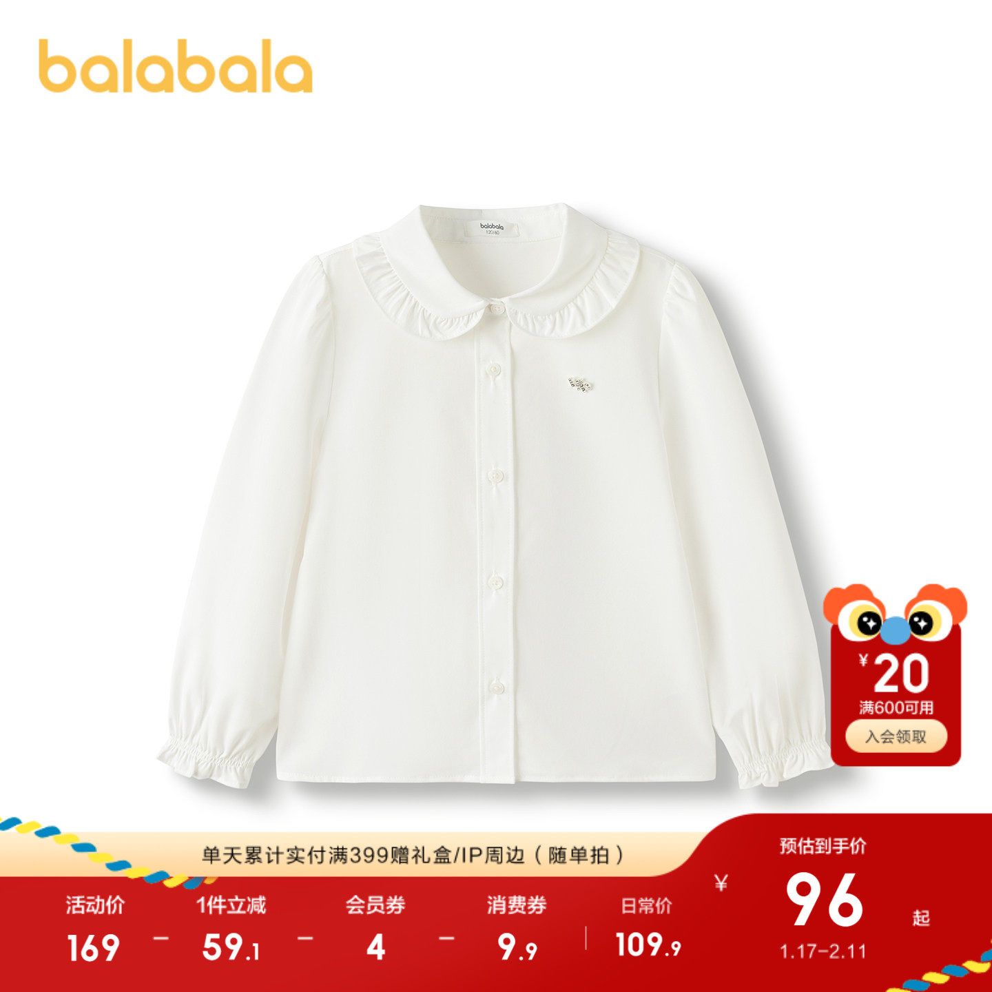 巴拉巴拉童装女童衬衫儿童长袖2025新款秋装舒适凉感抗菌时尚潮酷