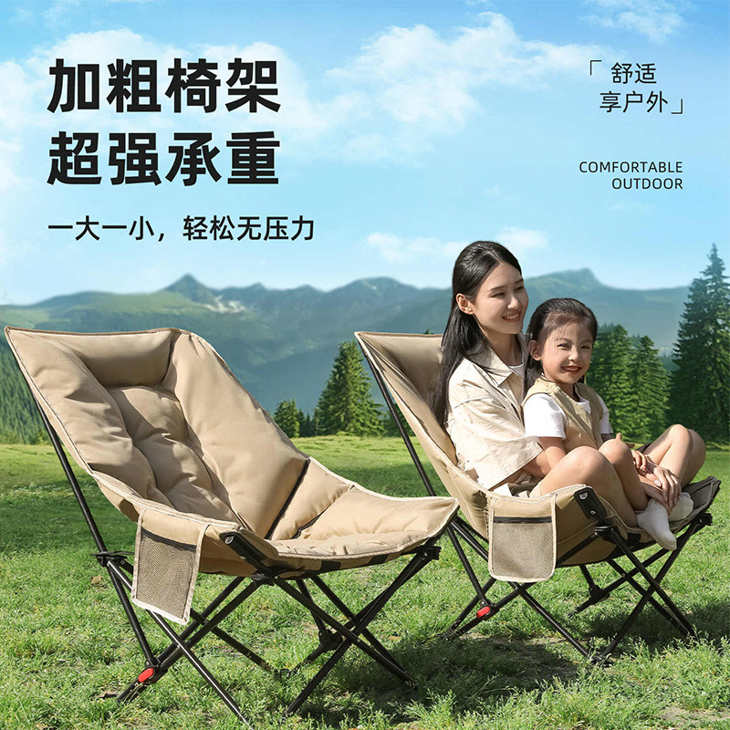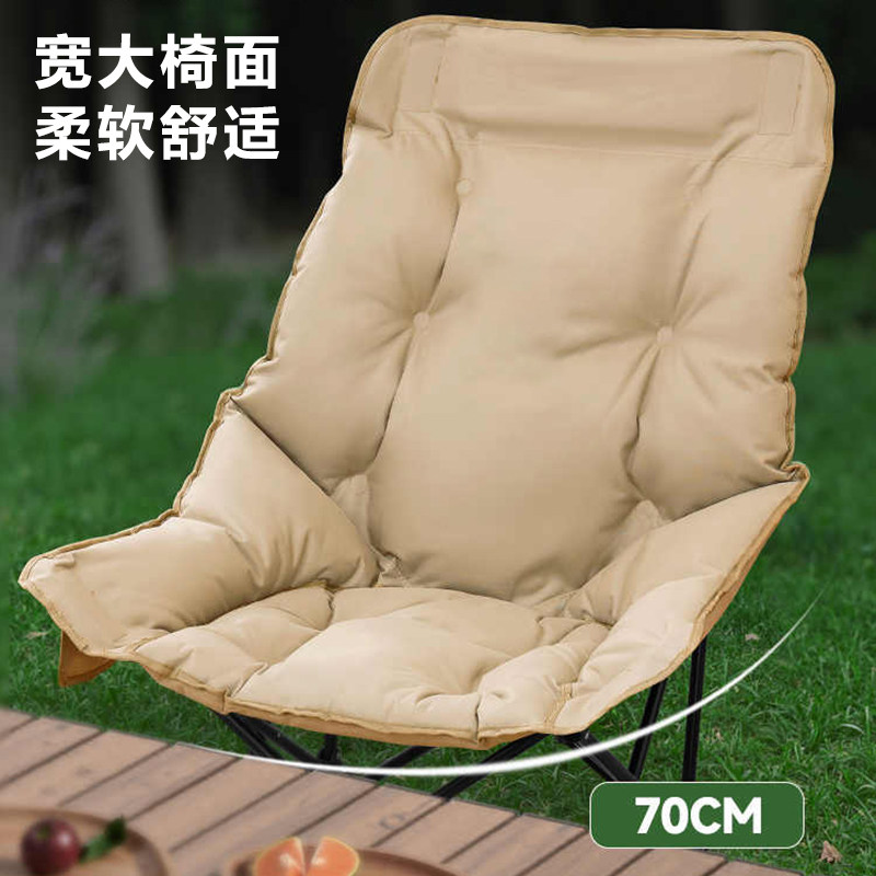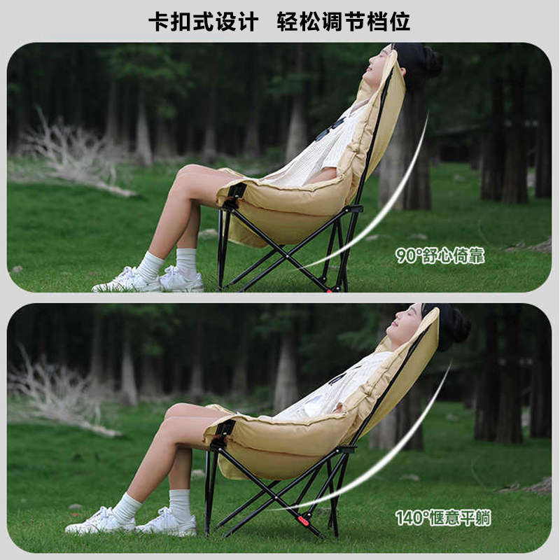 户外折叠椅露营椅子便携式月亮椅加棉加高躺椅钓鱼野餐沙滩凳装备