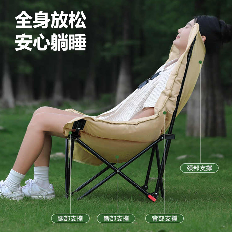 骆驼躺椅加厚月亮椅高背户外折叠椅便携露营办公午睡午休休闲椅子