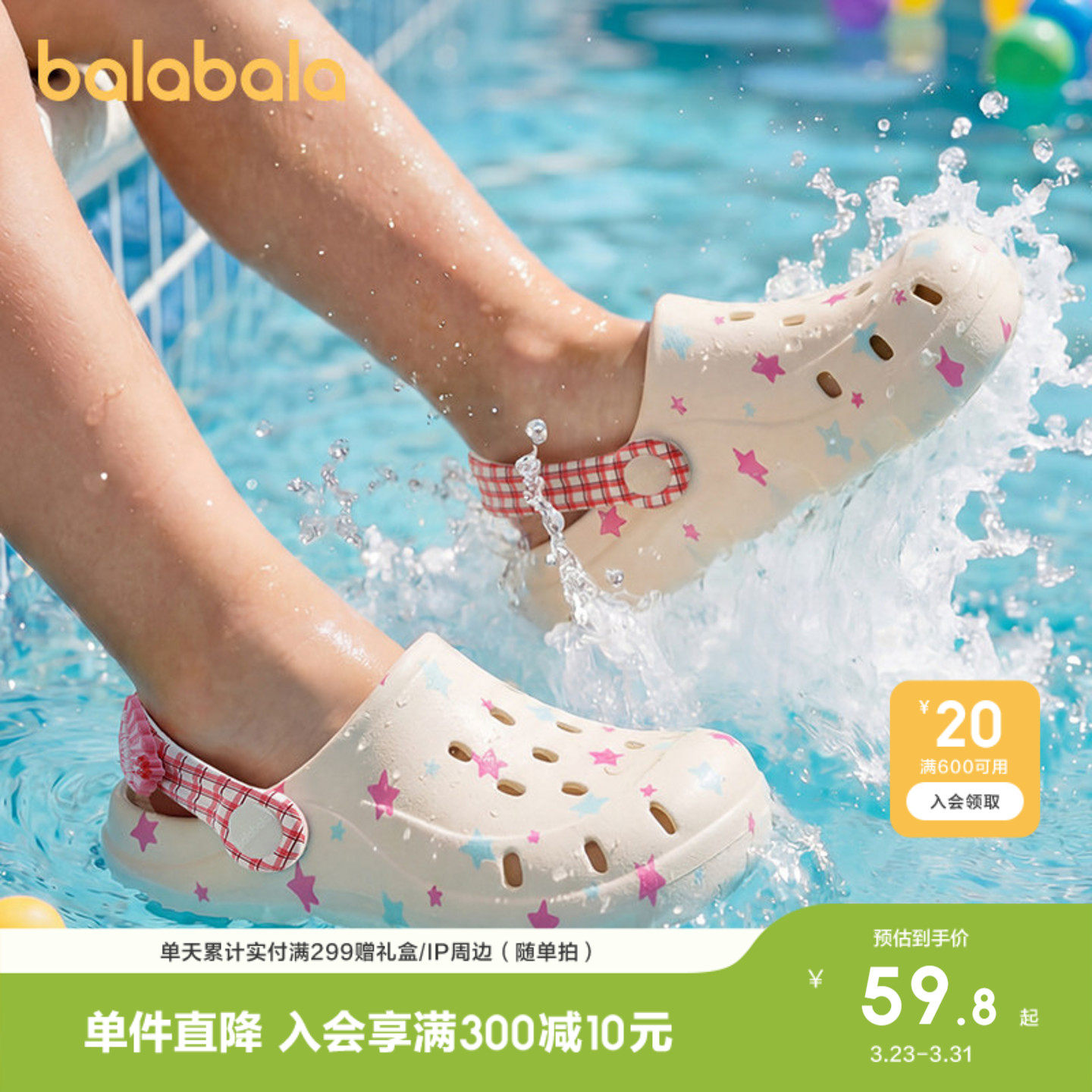 巴拉巴拉童鞋儿童拖鞋女童2026年新款夏季清凉户外甜美印花洞洞鞋