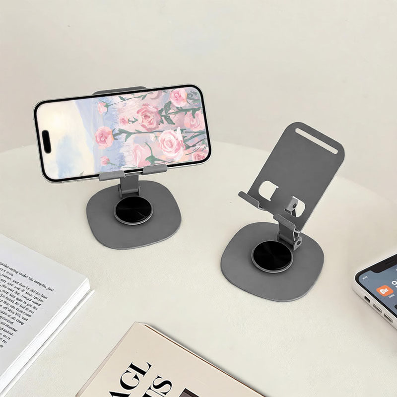 ins高级灰金属手机桌面支架360度旋转折叠支架宿舍手机追剧直播架