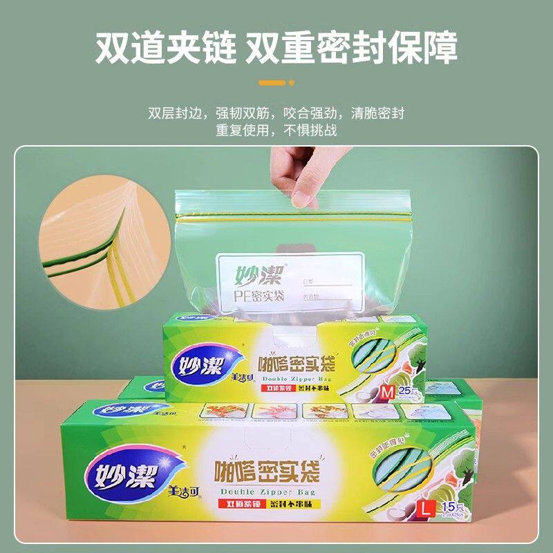 妙洁保鲜袋密封袋食品级家用冰箱冷冻收纳带封口塑封食品袋自封袋
