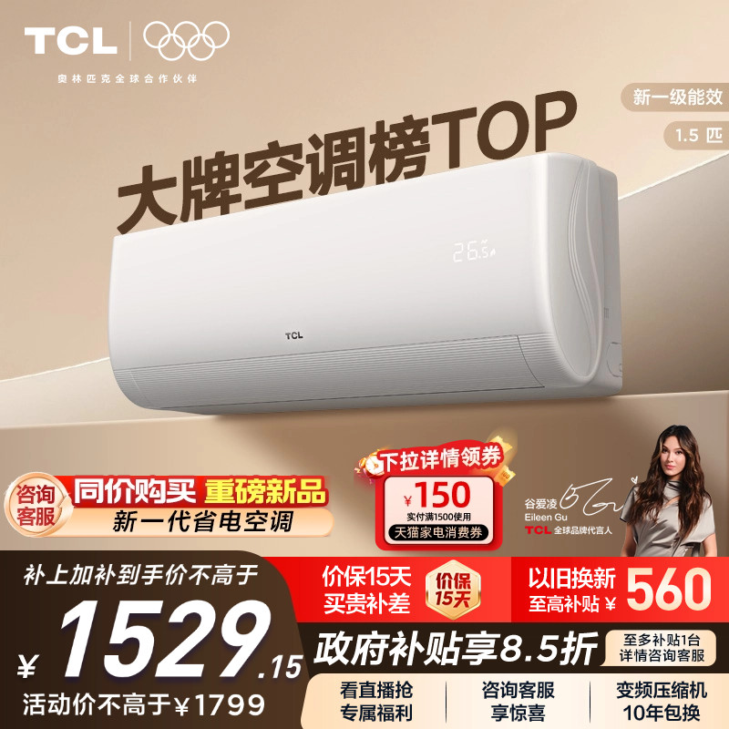 TCL空调 1.5匹挂机新一级冷暖卧室变频壁挂式家用空调净怡风