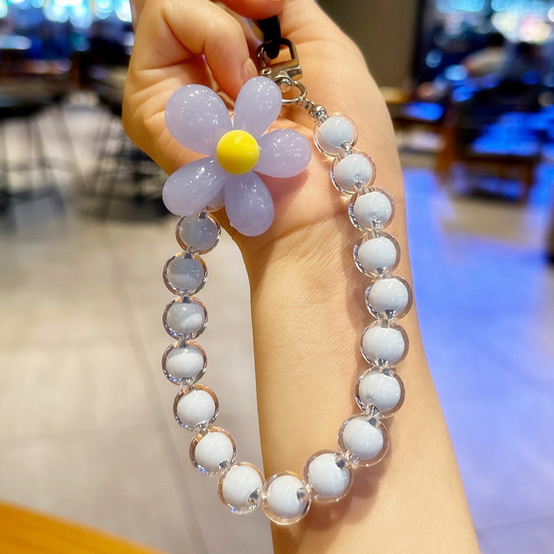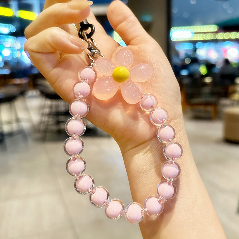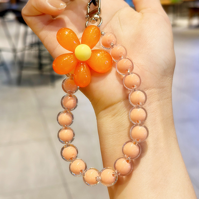 花朵手机挂绳手腕串珠挂链多彩马卡龙色圆珠子挂件短款手提挂饰