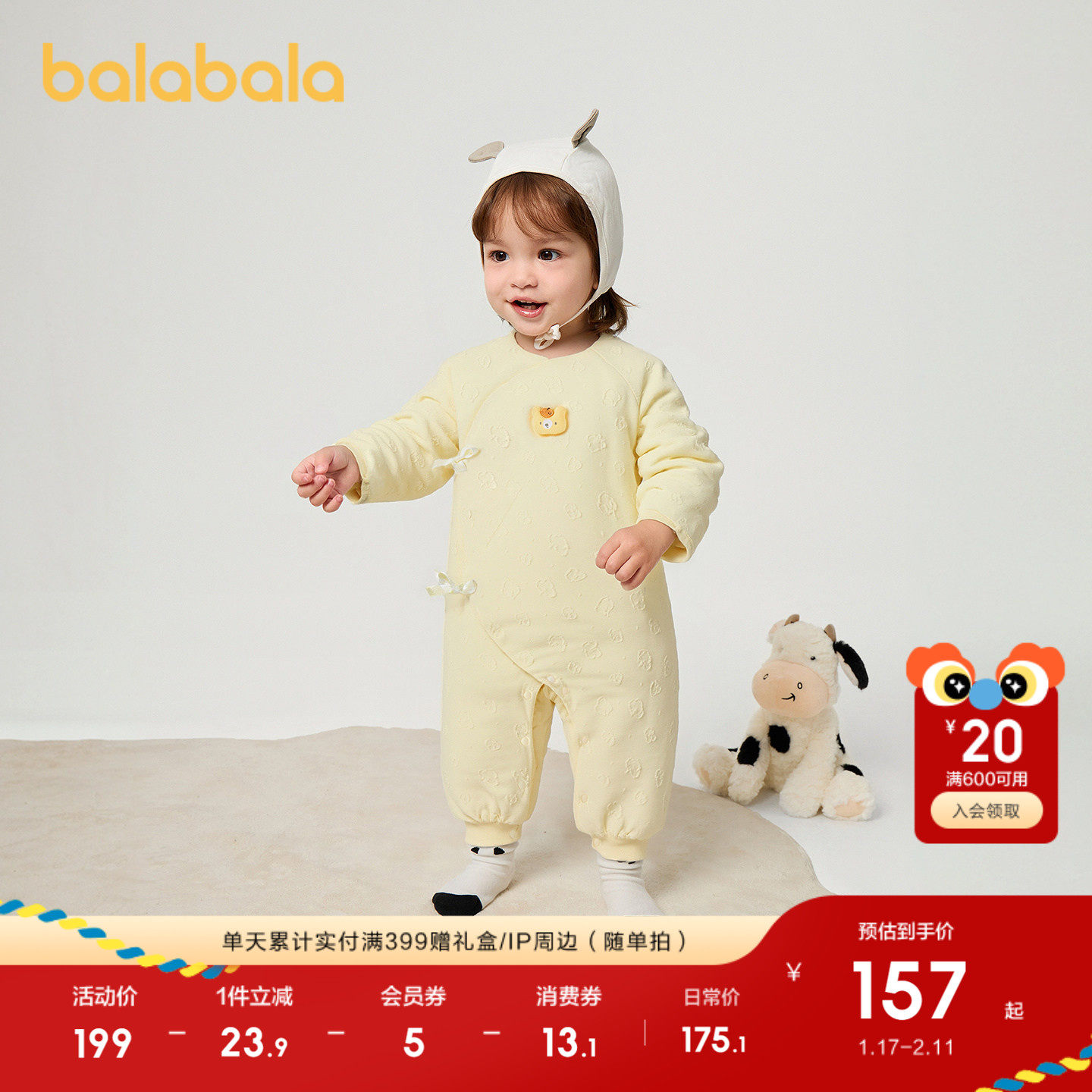 【商场同款】巴拉巴拉连体衣婴儿秋冬宝宝抱衣爬服2025新款舒适萌