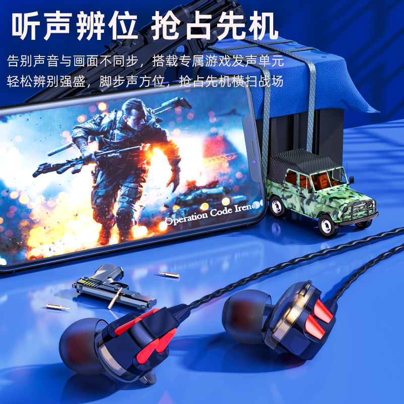 耳机双动圈入耳式安卓通用重低音炮手机有线控挂耳式K歌运动跑步