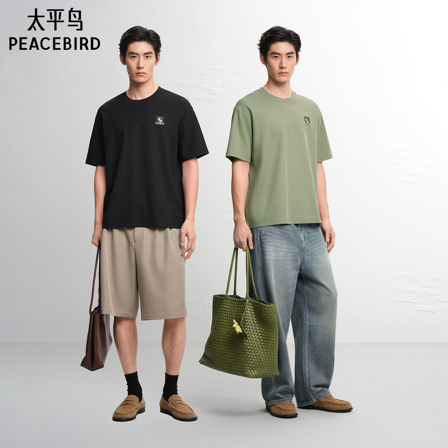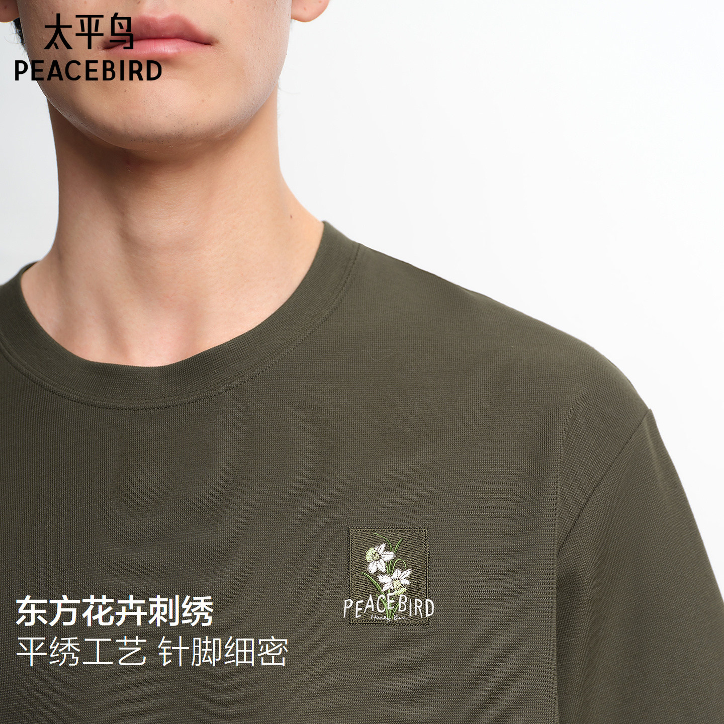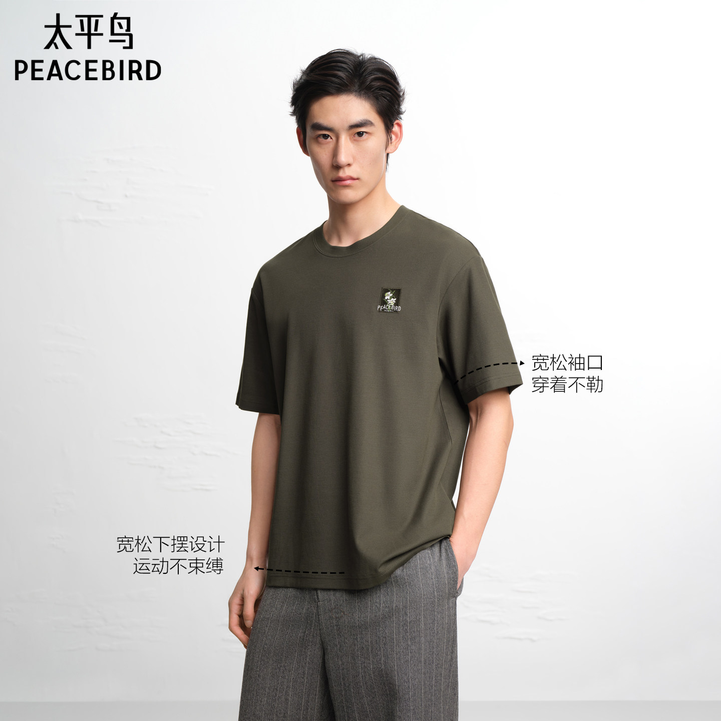 【肌理感】太平鸟男装纯色logo刺绣T恤2026夏季新款圆领通勤短袖
