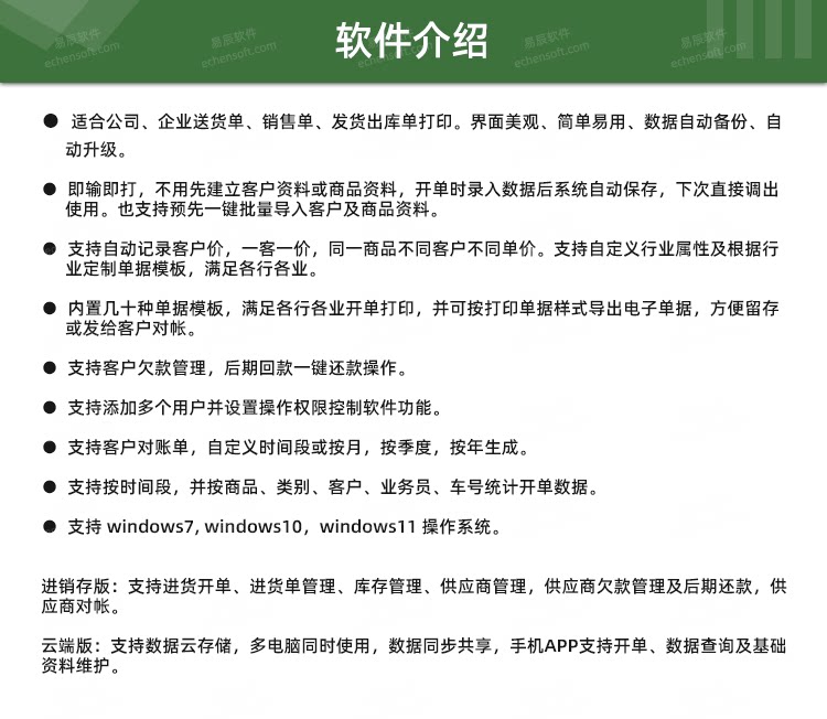 易辰送货单打印系统软件开单销售清单进销存发货对账管理模板定制