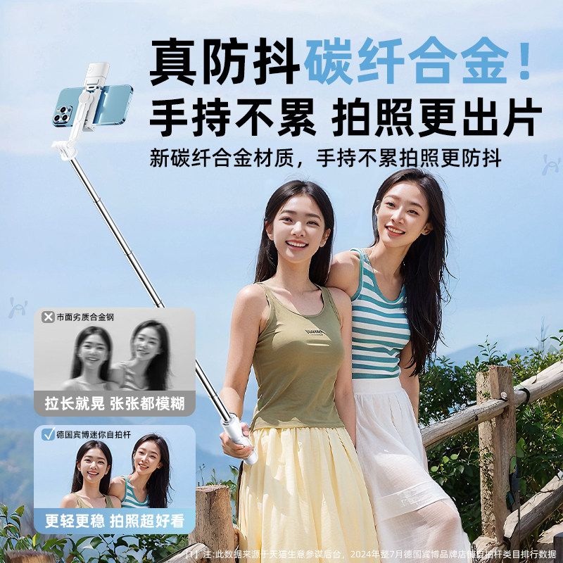 品胜迷你自拍杆2025新款落地三脚架旅游便携式拍照神器手机支架拍摄360度旋转手持防抖蓝牙vlog演唱会专用