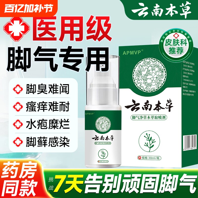 云南本草脚气喷雾剂烂脚丫脱皮糜烂止痒脚趾杀菌真菌感染专用潮湿