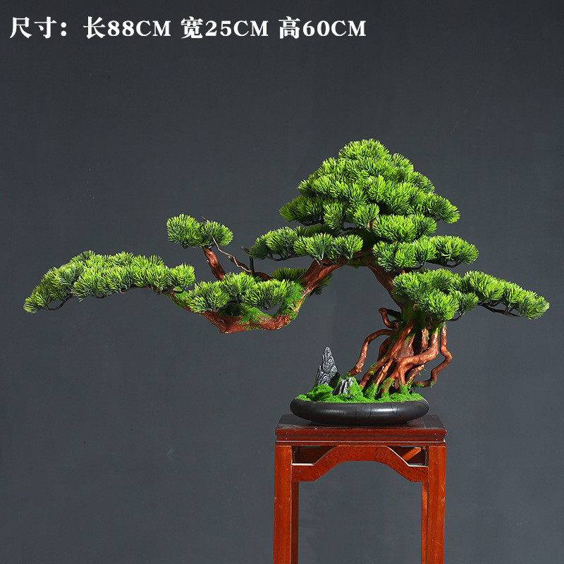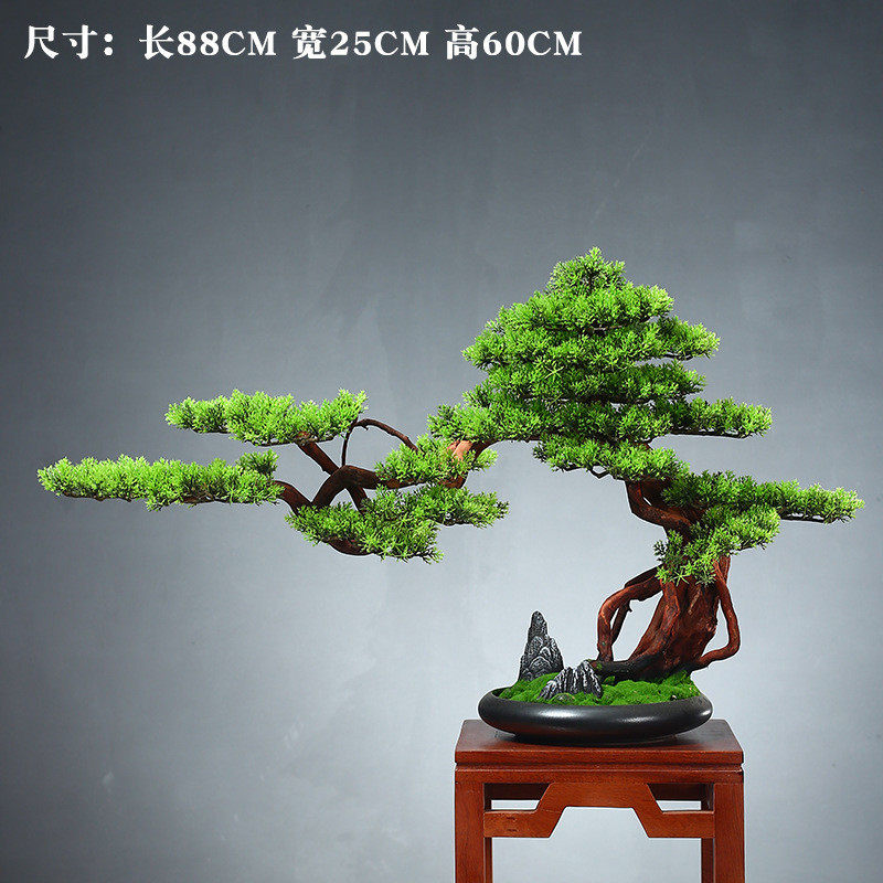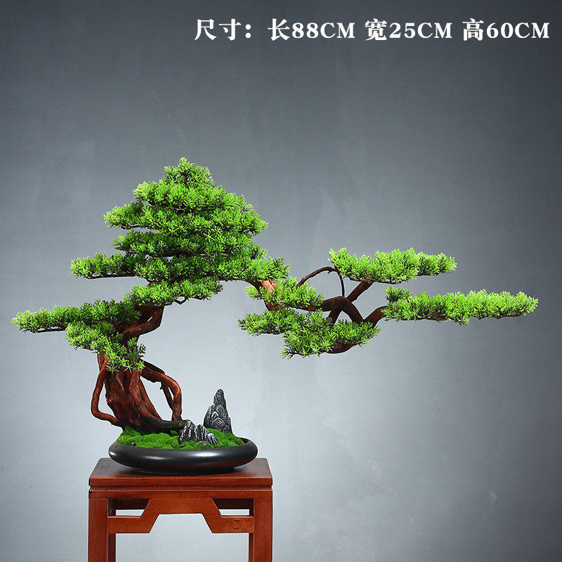 家居装饰盆景绿植盆栽客厅电视柜玄关办公室仿真迎客松新中式摆件