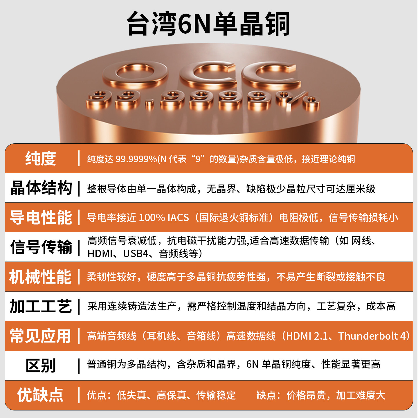 6N单晶铜线芯+单晶铜屏蔽+黄铜镀金插头