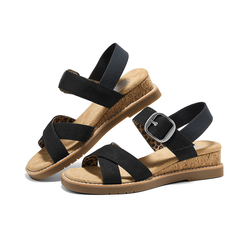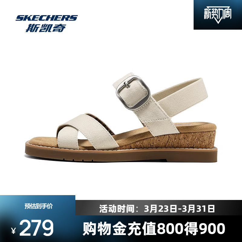 斯凯奇凉鞋女款2026新款夏季交叉绑带休闲舒适楔形一脚蹬沙滩鞋