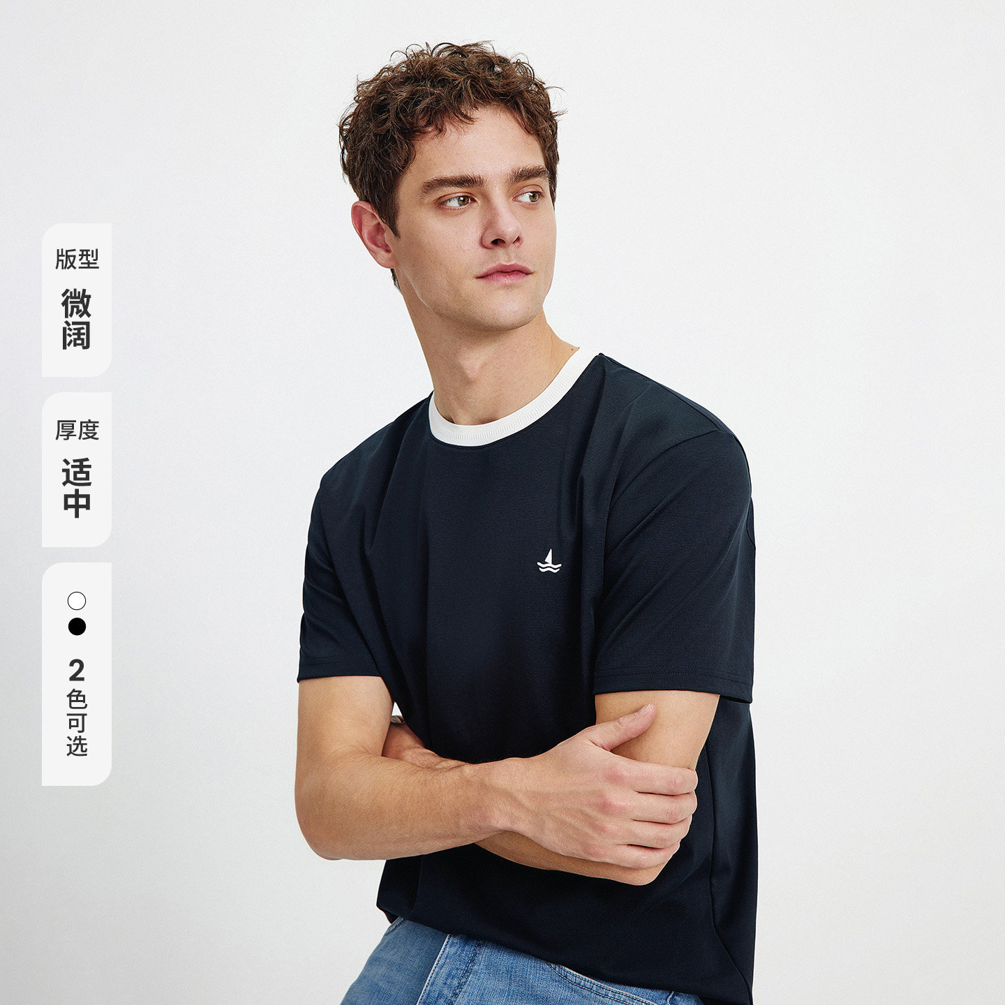 Navigare意大利小帆船休闲圆领T恤男短袖2026春夏新品凉感体恤衫