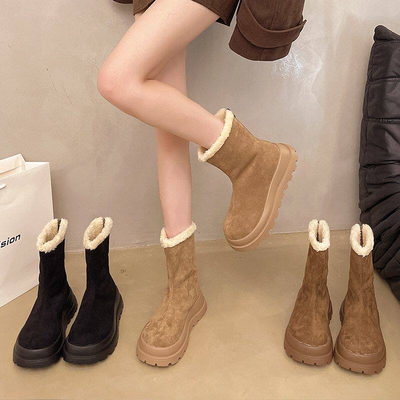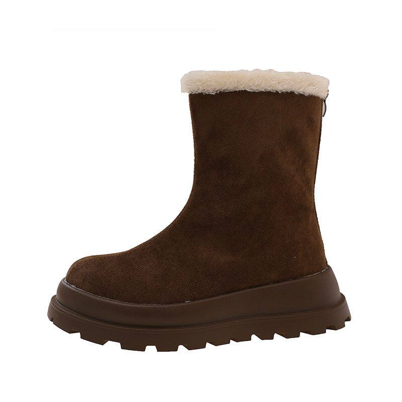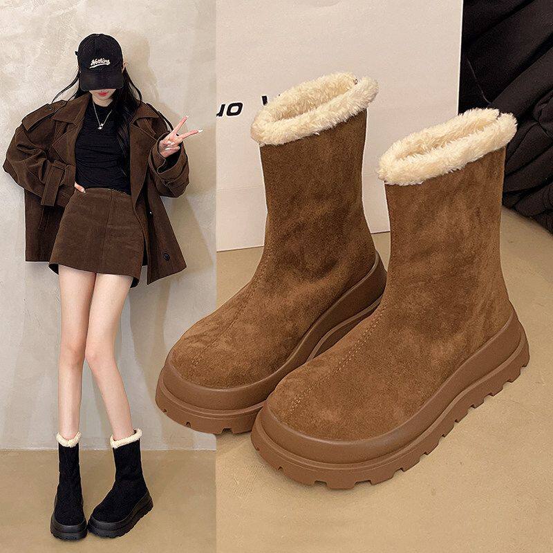 他她女孩2025冬季新款松糕厚底防滑加绒加厚雪地靴女短筒经典棉鞋