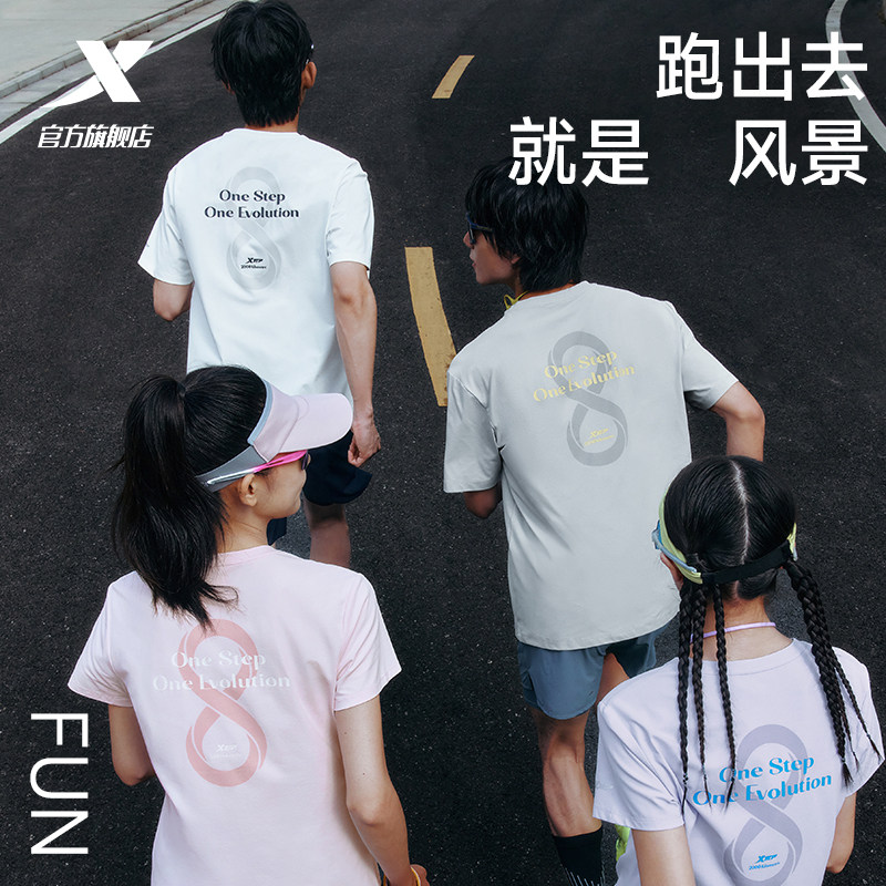 特步圆领短袖T恤男官方新款夏季情侣休闲半袖上衣简约女运动体恤