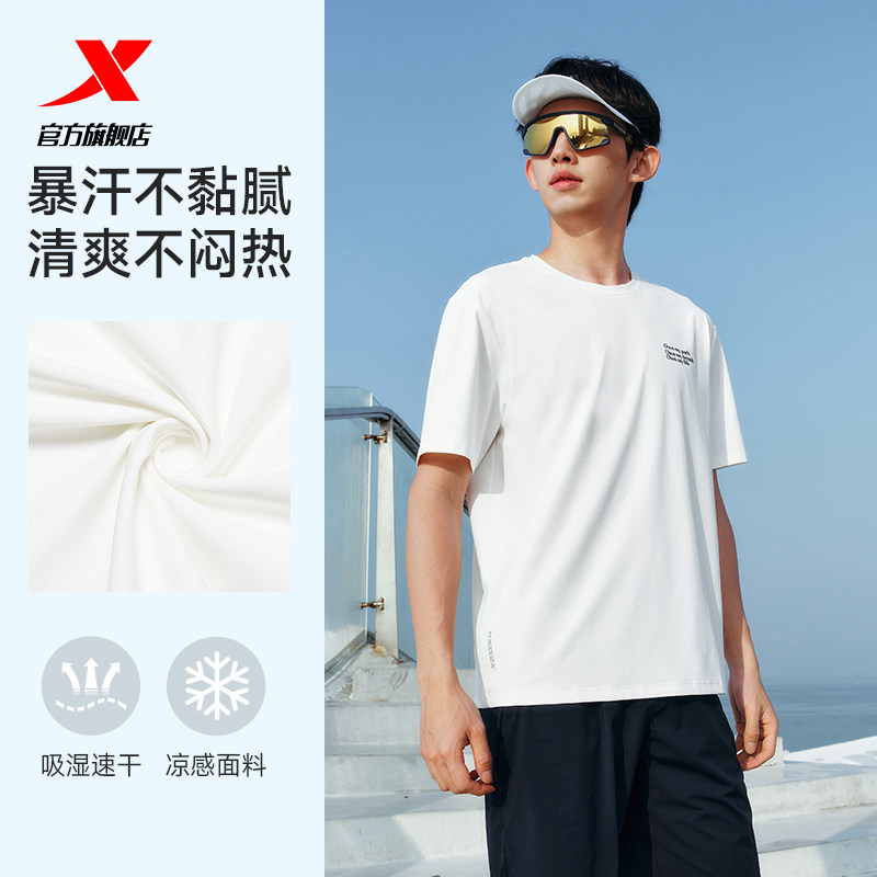 特步速干T男夏季宽松短袖冰丝户外跑步T恤透气上衣男士健身运动服