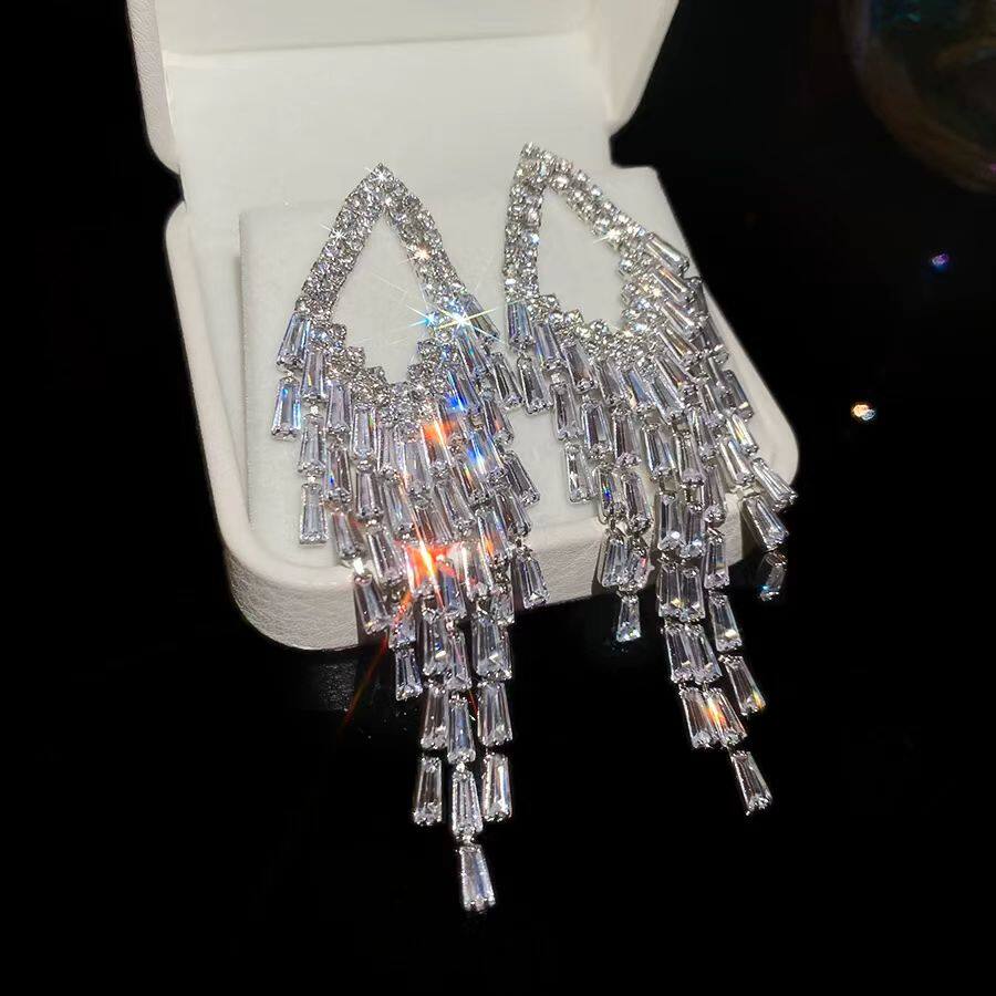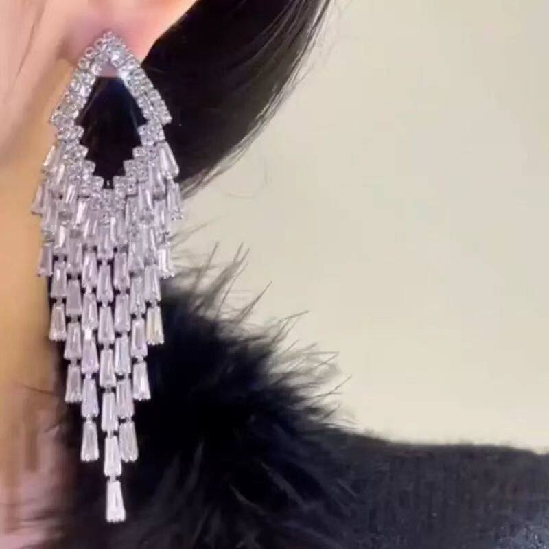 2025新款轻奢满钻银色流苏耳环气质高级礼服银针耳饰耳钉法式水滴