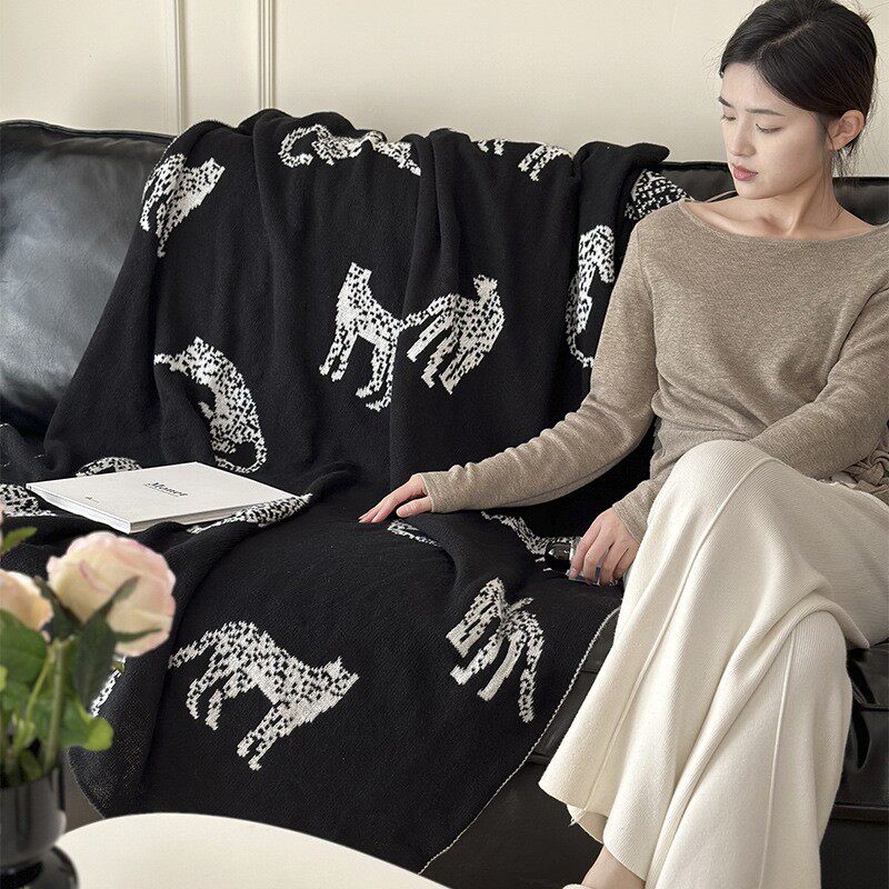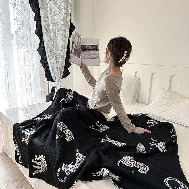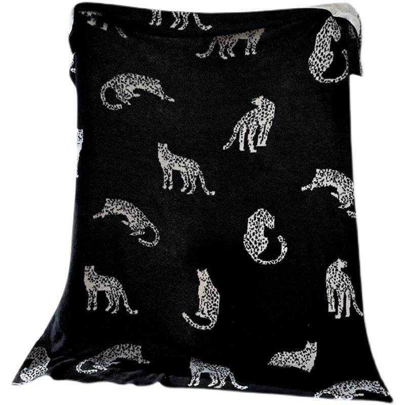 轻奢中古猎豹毛毯针织毯复古客厅沙发毯民宿床尾毯床尾巾黑色盖毯