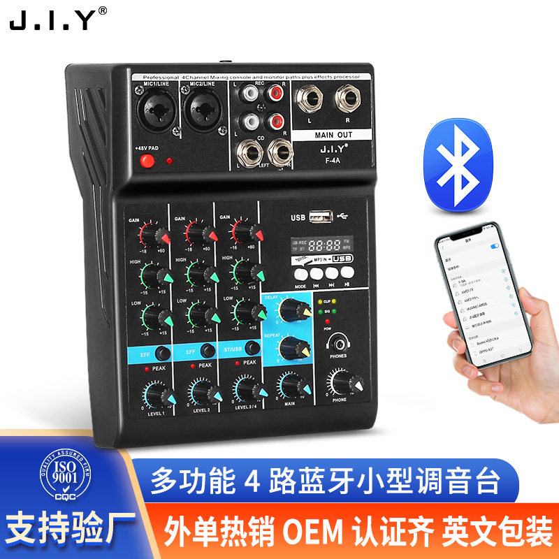 迷你4路调音台家用电脑录音声卡直播混音器小型USB蓝牙DJ mixer