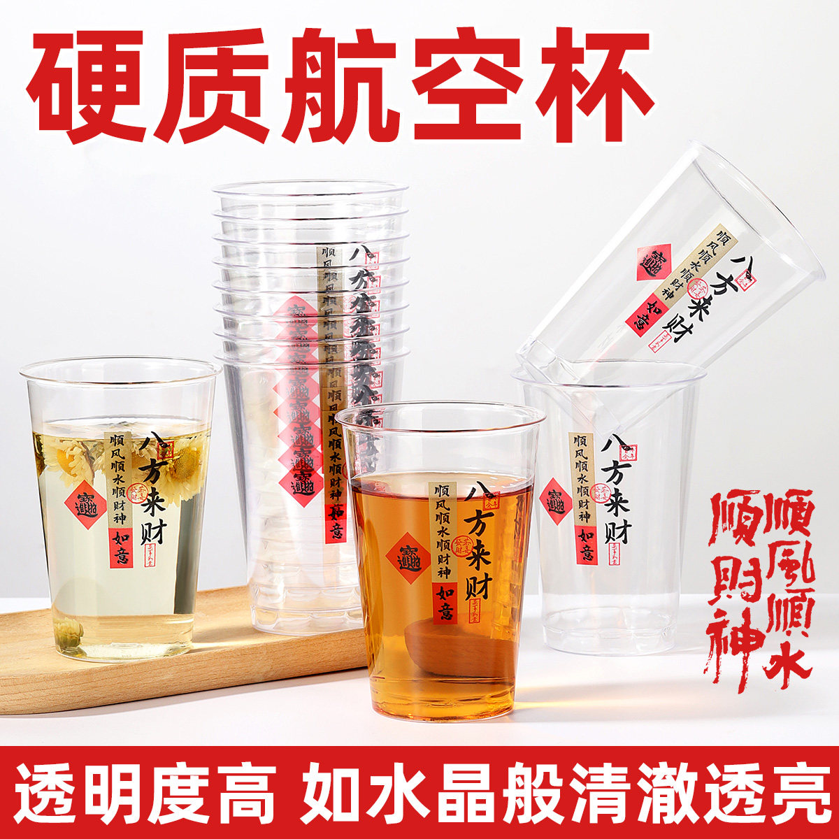 一次性杯子航空杯硬塑八方来财家用饭店酒吧啤酒杯耐高温2025新款