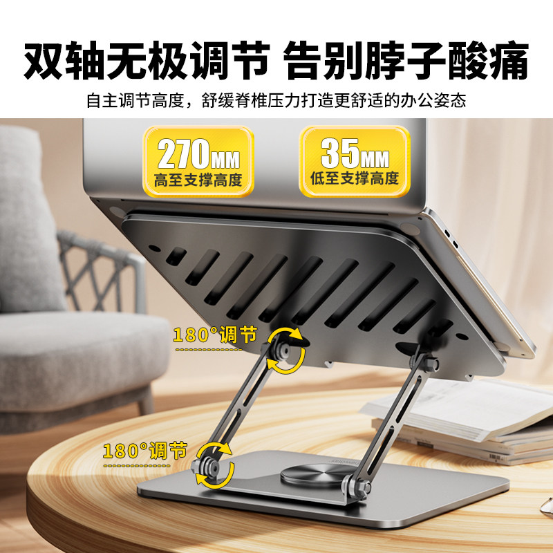 极川 360°旋转笔记本支架电脑支架无极升降立式增高架苹果Mac华为联想拯救者铝合金托架