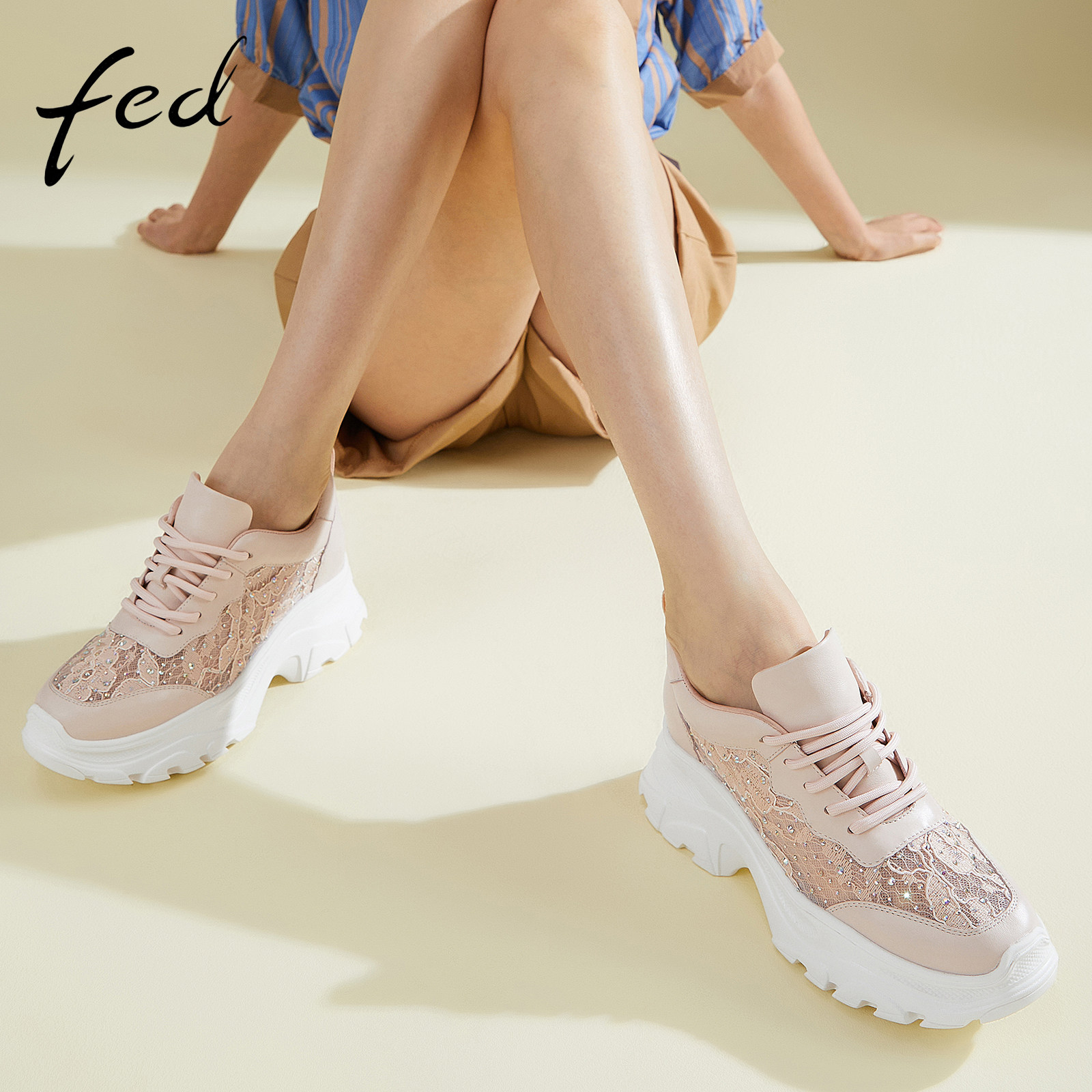 fed蕾丝网面老爹鞋夏季新款女鞋松糕厚底鞋休闲鞋女款D0423-YA682