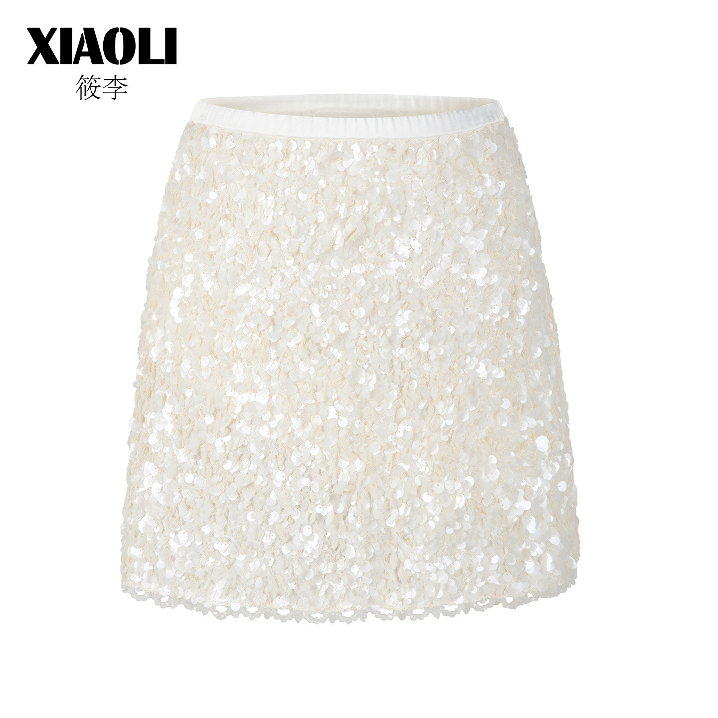【XIAOLI筱李】2026新款年会派对白色仿水晶钉珠黑色闪亮片短裙