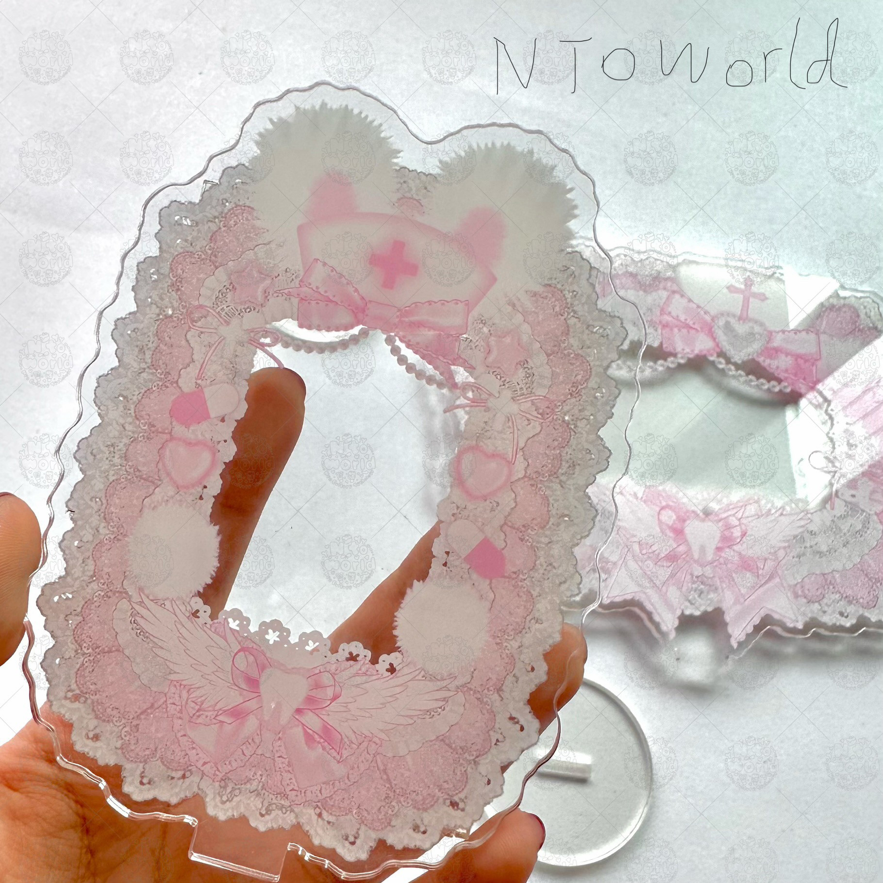 蕾丝插卡立牌 蕾丝立牌(低饱和粉)蕾丝卡套 蕾丝卡包