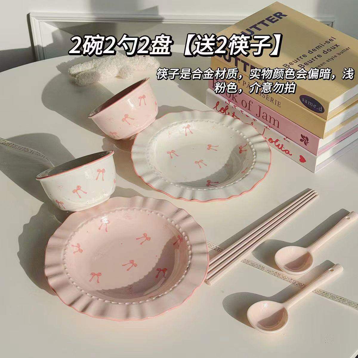 奶油风陶瓷碗家用卡通菜盘子可爱米饭碗汤碗釉下彩儿童餐具耐高温
