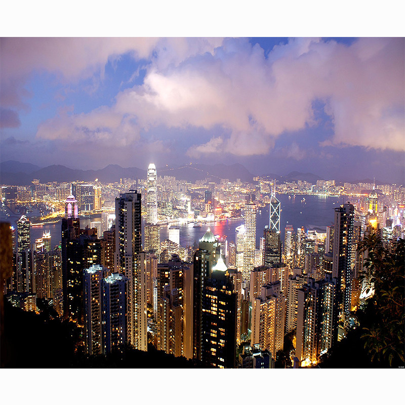 香港夜景城市街道直播背景布3d立体高级感壁纸画直播间城市建筑九龙背景墙喷绘场景布置拍视频段子高级感
