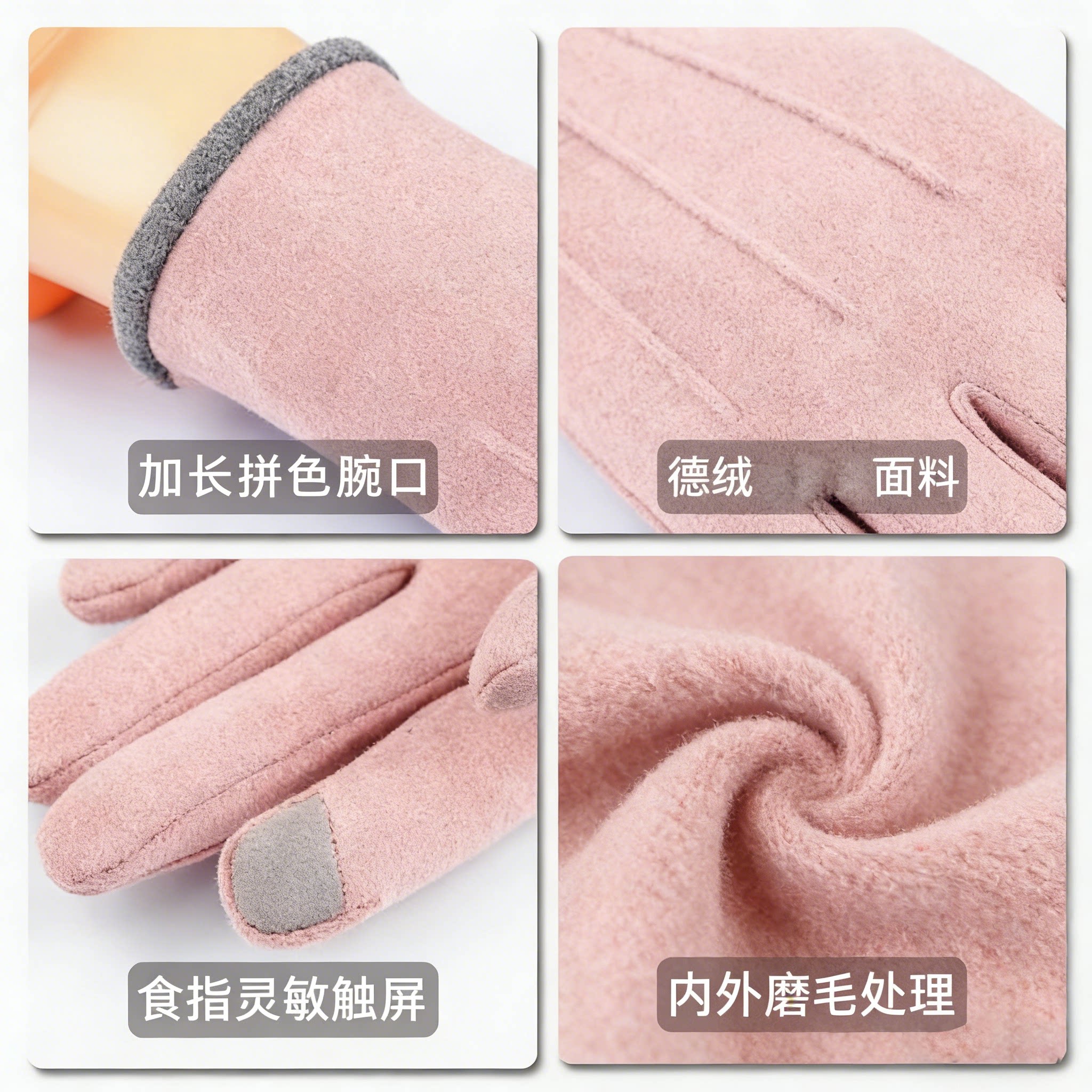 保暖手套冬天加绒加厚可爱麂皮绒女士骑行防寒骑车防风触屏冬季女