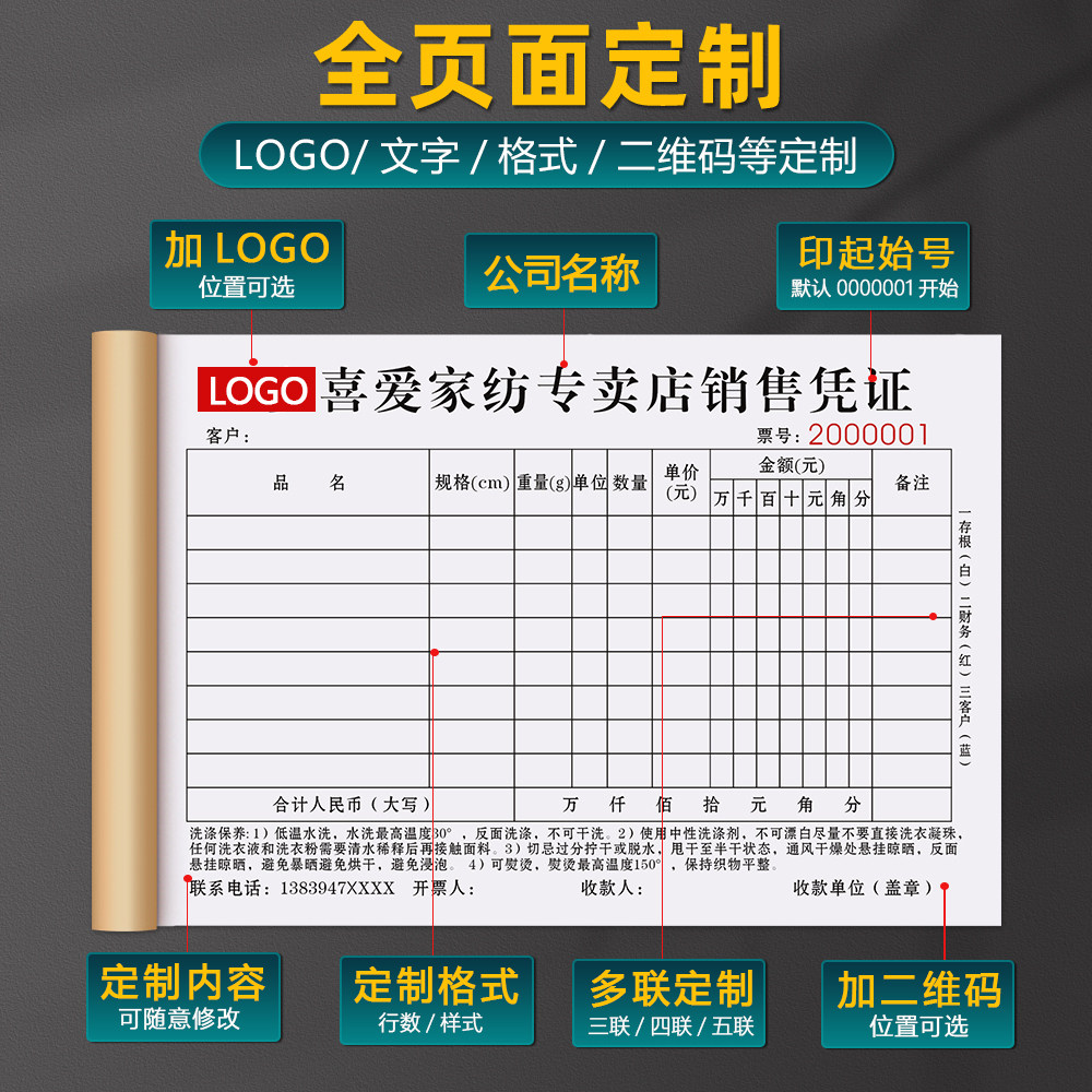【家纺店专用】销售小票二联定制纺织品销货清单三联床上用品结算凭证窗帘订购票据床品布艺报价单手写开单本
