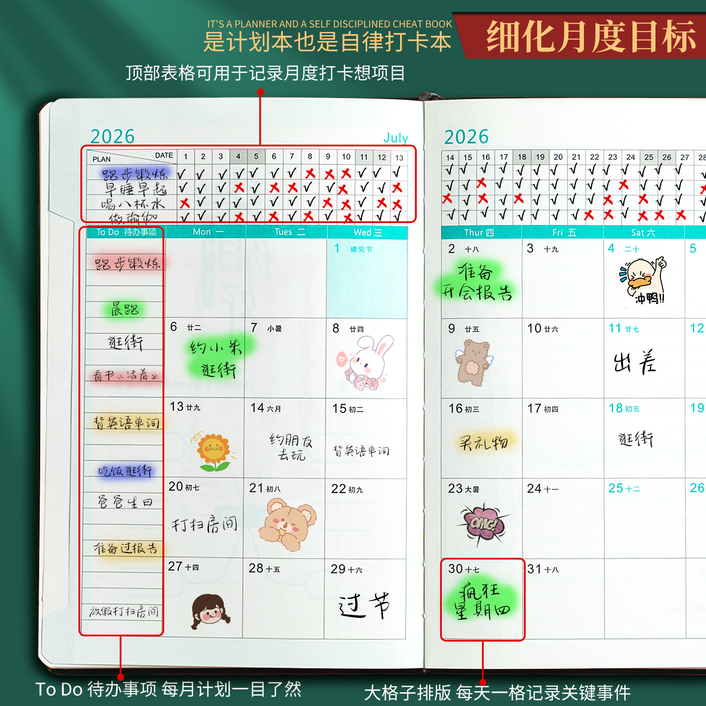 2026年日程本新款计划表365天每日时间管理效率手册大学生日历自律打卡本高颜值记事本文艺精致手账笔记本子