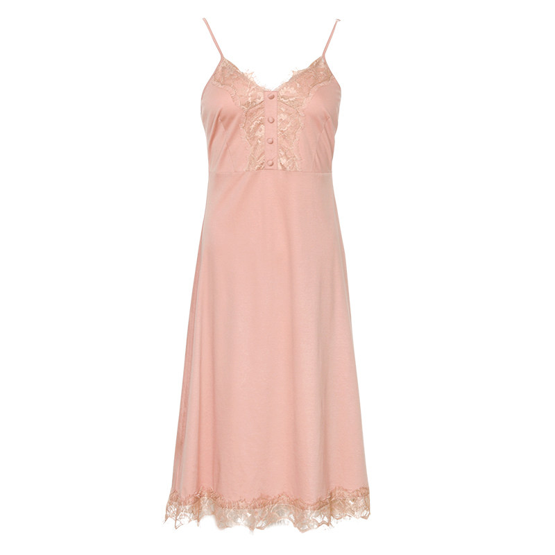 睡裙女夏季吊带性感薄款蕾丝睡衣孕妇带胸垫纯棉莫代尔宫廷公主风