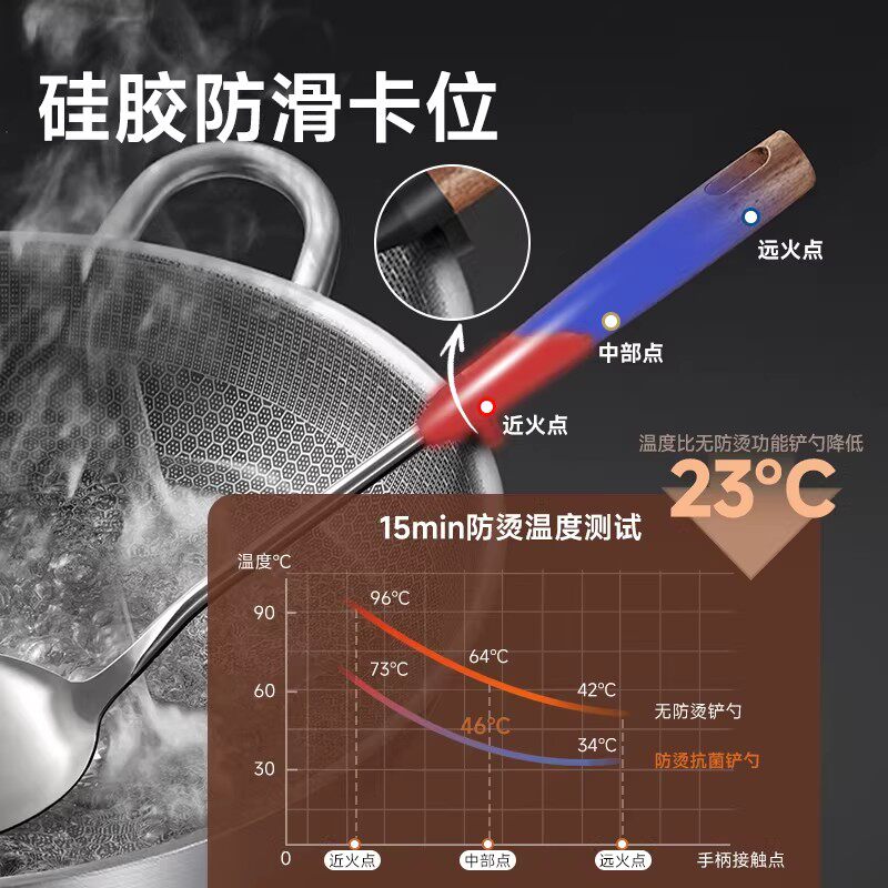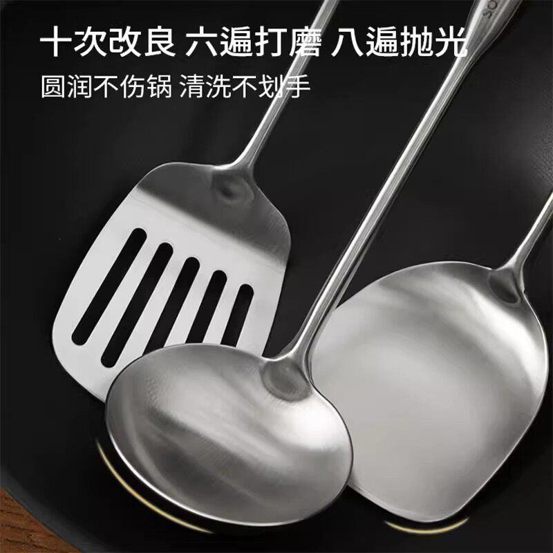 锅铲套装家用胡桃木手柄炒勺炒铲炒菜铲子钢汤勺厨具短柄食品级