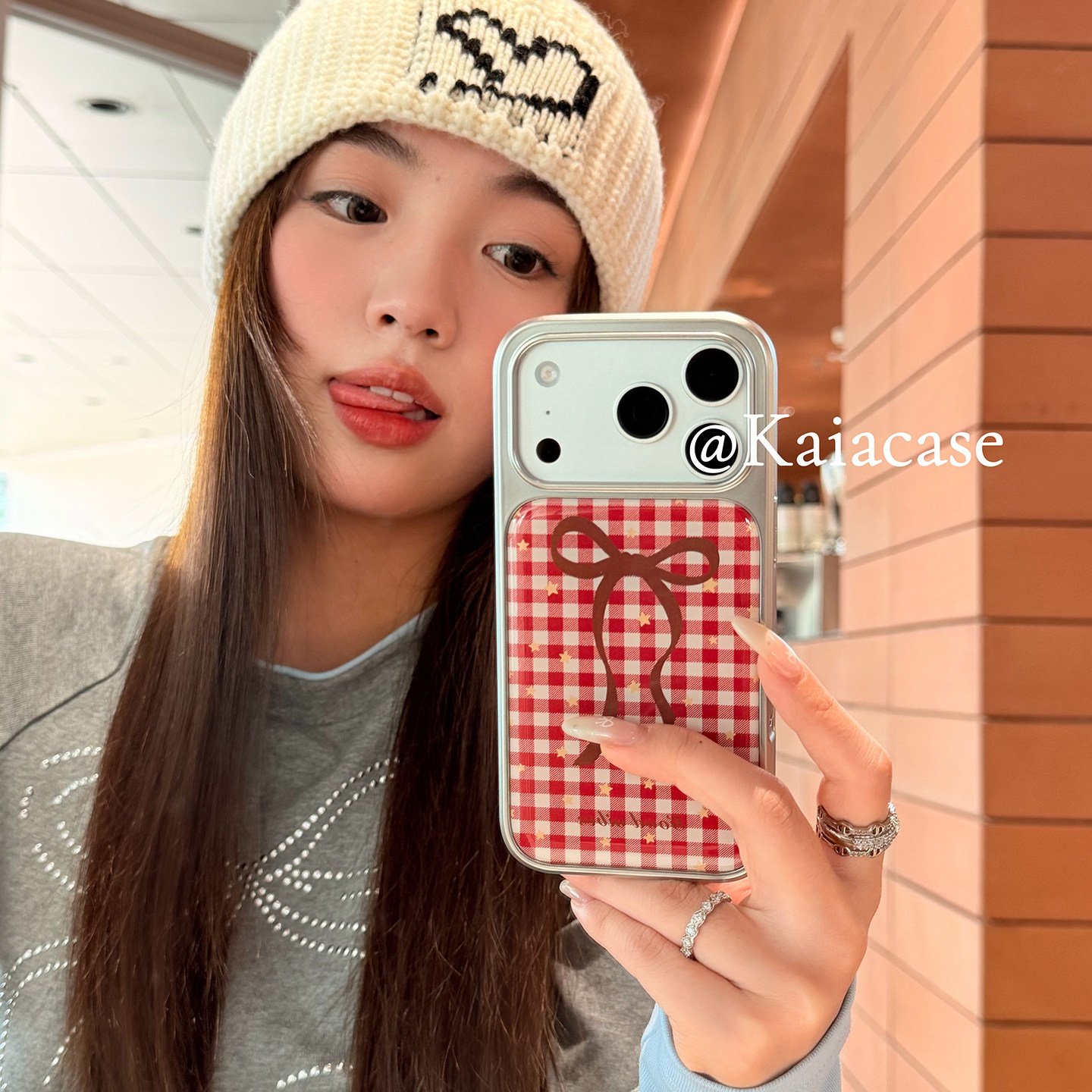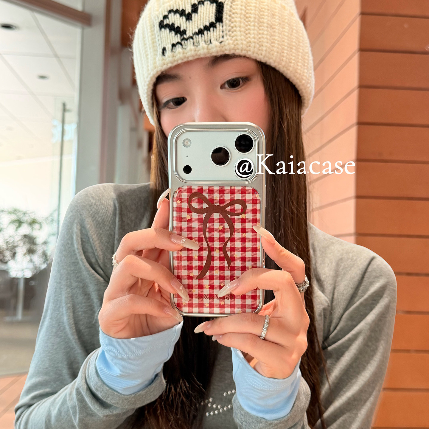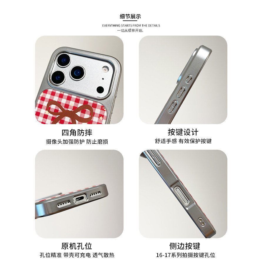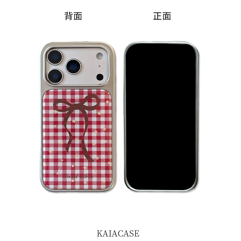 kaia 小众少女心红格纹蝴蝶结星星适用苹果17promax手机壳iphone16pro新款15女14pro创意15pro全包防摔手机套