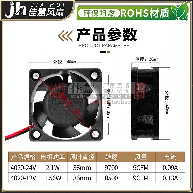 欣瑞丰XD4020L12S小型静音 DC12v/24V电源逆变器直流散热风机