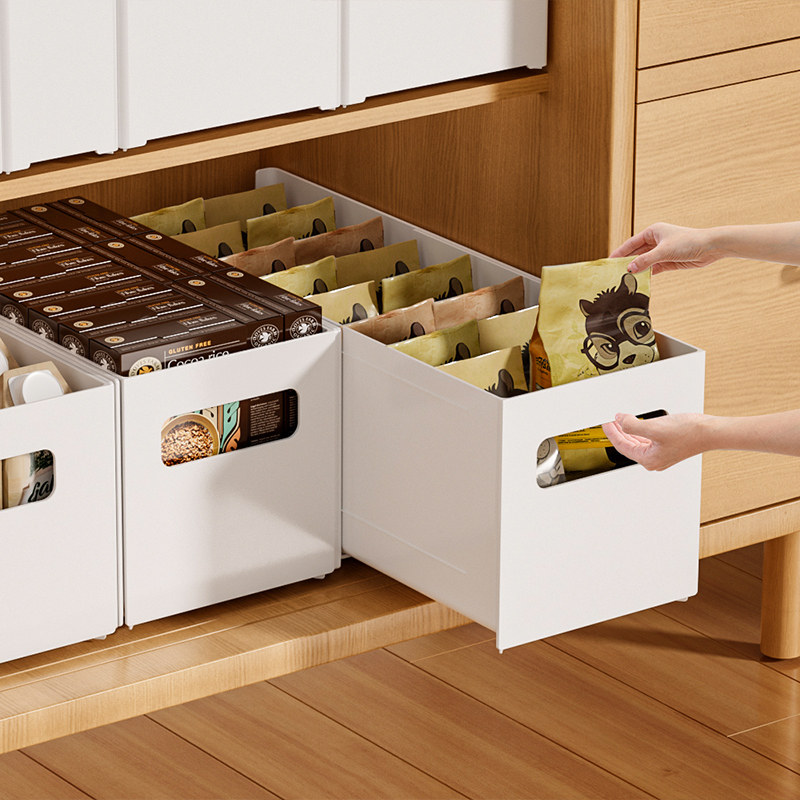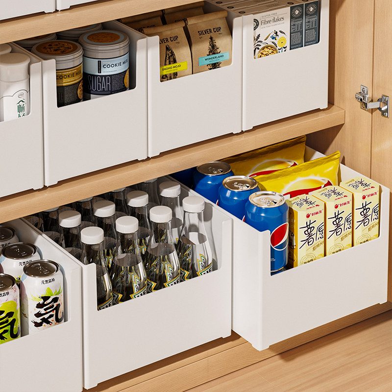 橱柜厨房收纳盒伸缩整理盒桌面零食杂物收纳筐水槽深柜直角储物盒