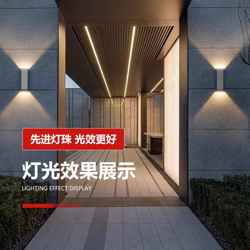 户外壁灯LED双头上下发光庭院室外防水圆形方形铝材外墙灯可调光