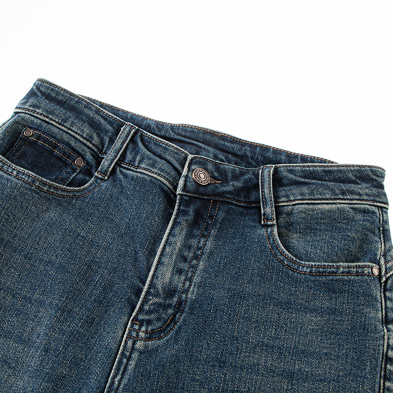 twosweet【超级裤神】四面弹重塑大长腿高腰直筒微喇叭原色牛仔裤