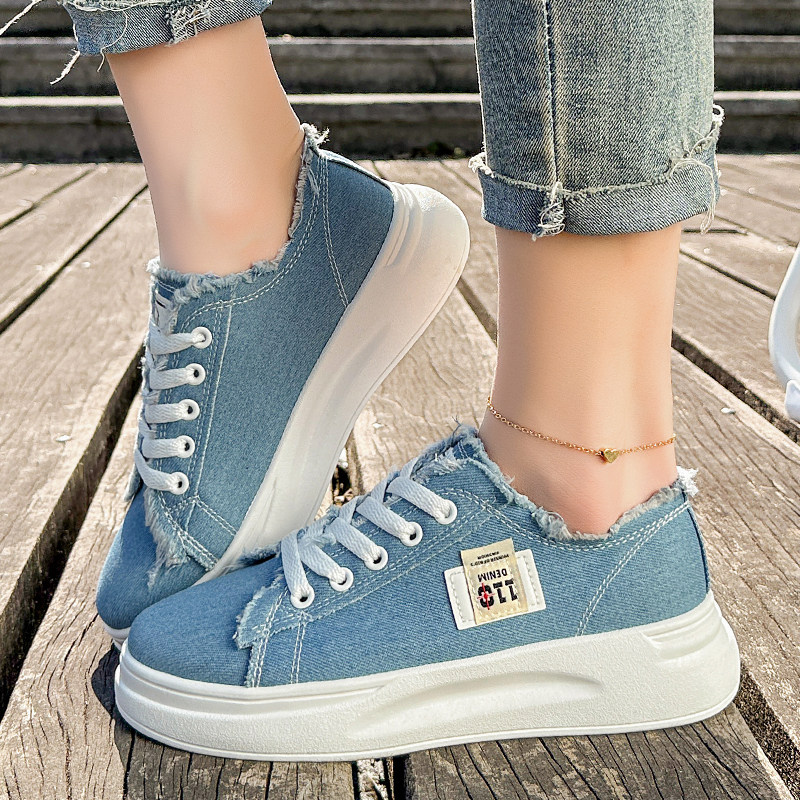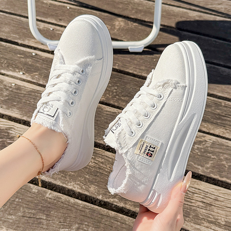 小白鞋子女2026春秋季新款爆款时尚休闲帆布鞋厚底百搭运动板鞋潮