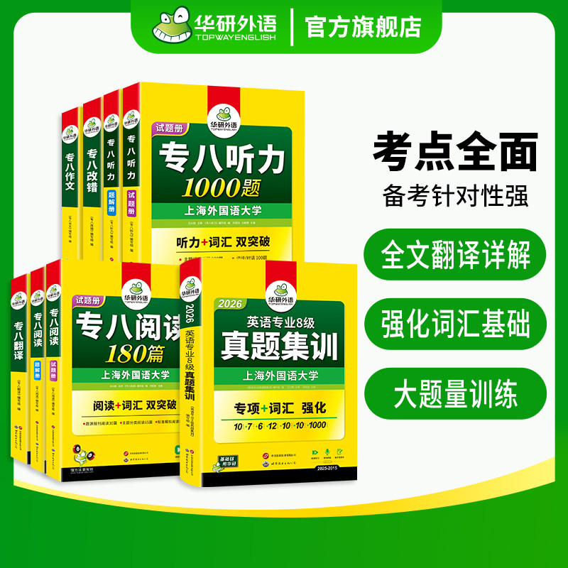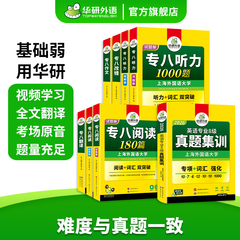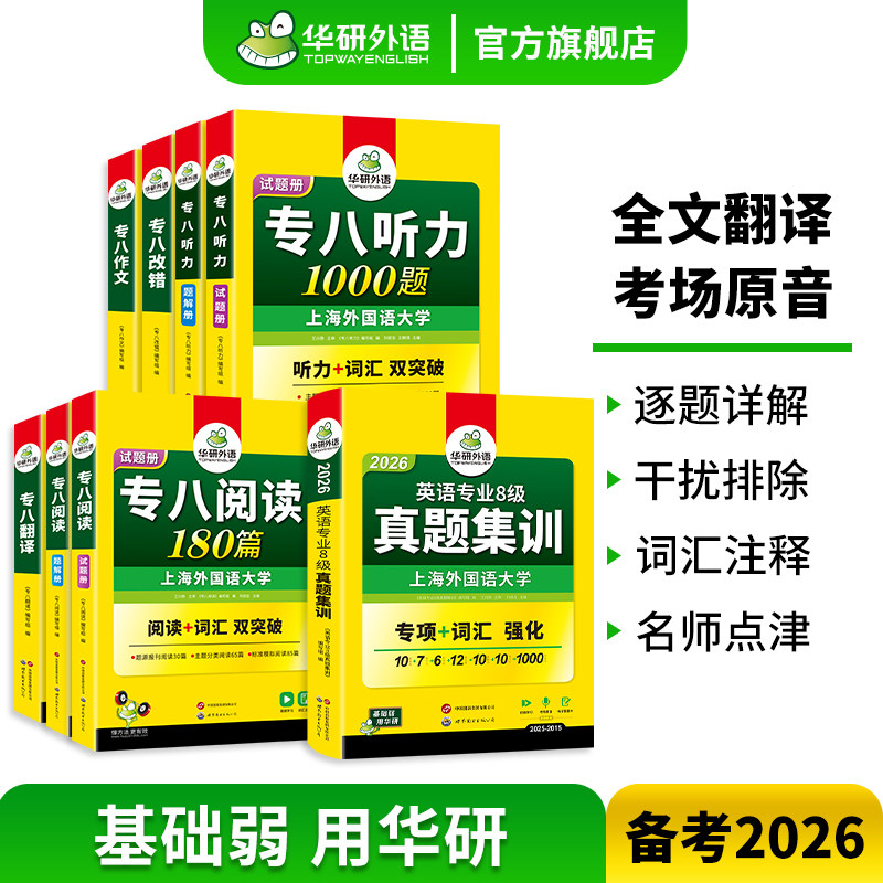 华研外语备考2026专八真题专项训练全套复习资料书英语专业八级历年真题试卷单词汇听力改错阅读理解翻译范文写作文tem8级指南集训