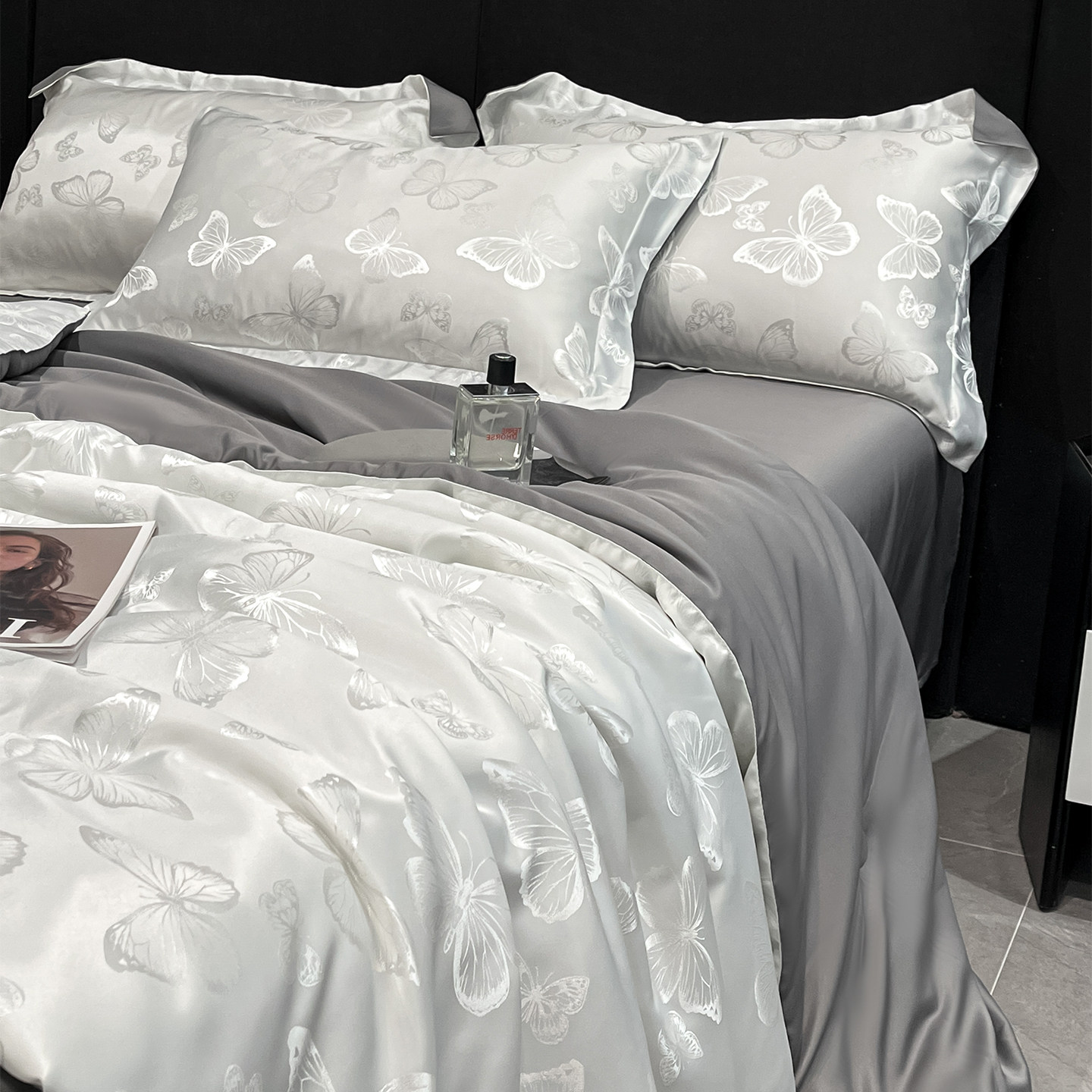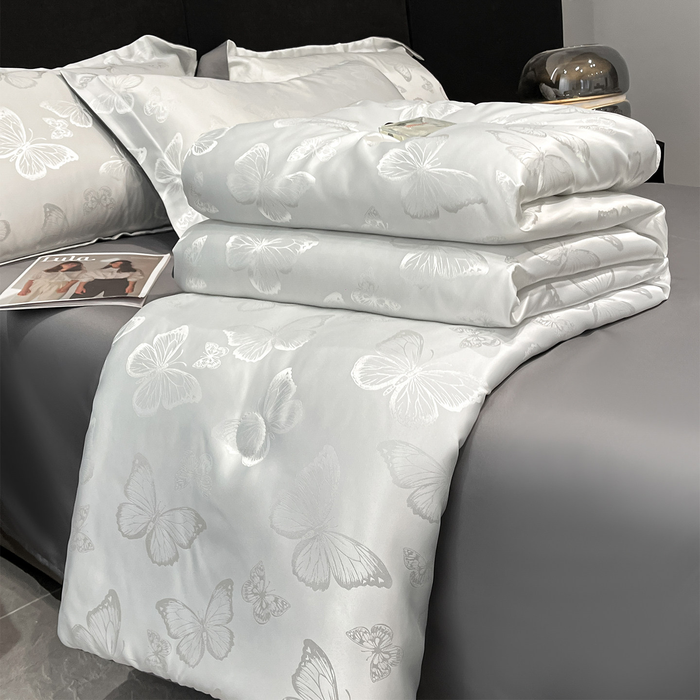 夏季轻奢夏凉被四件套简约冰丝空调被水洗真丝薄被子三件套可机洗