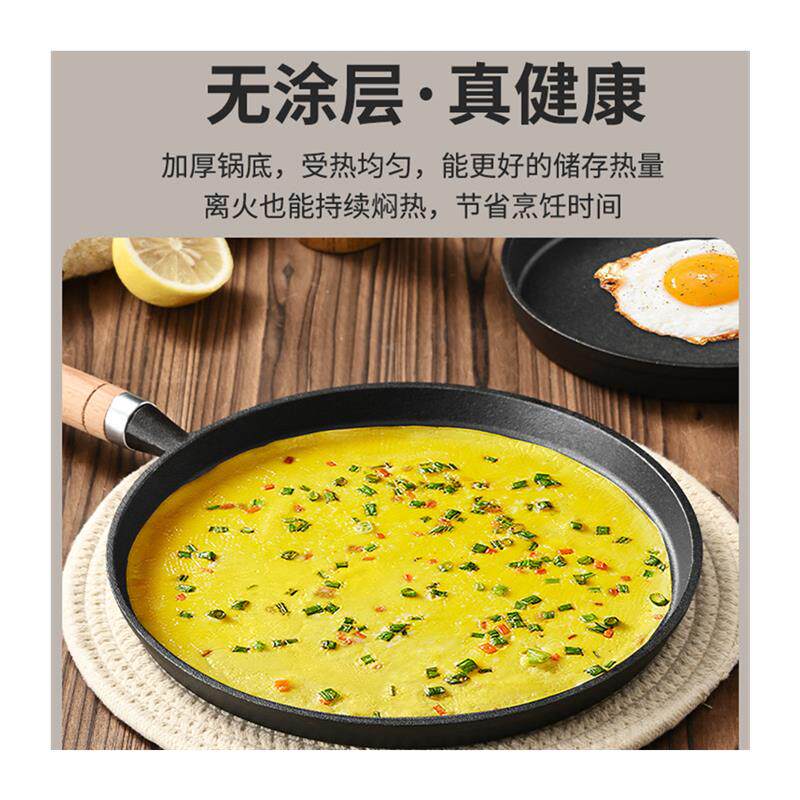 加厚铸铁平底锅家用无涂层烙饼锅手抓饼不粘煎锅摊煎饼果子工具