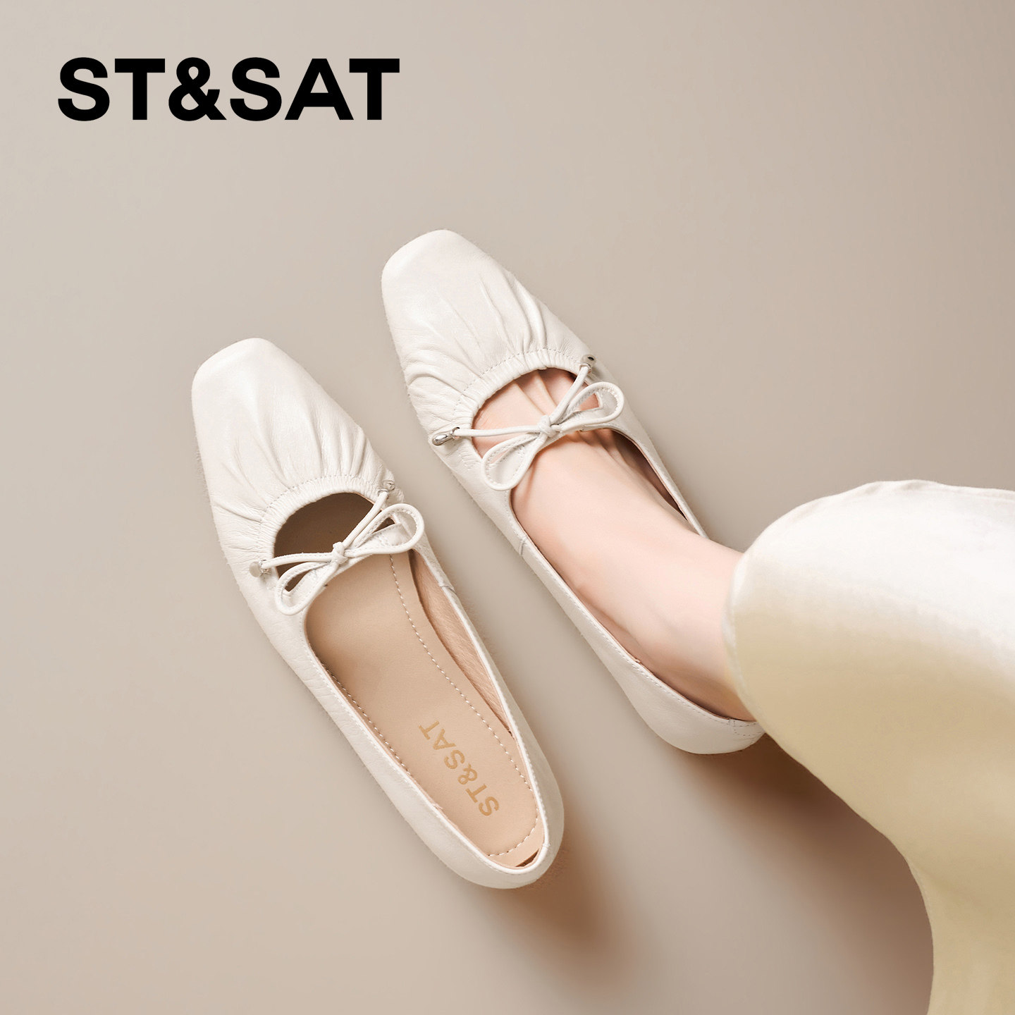 星期六法式褶皱蝴蝶结工作鞋女2026春季新款方头坡跟软底浅口单鞋